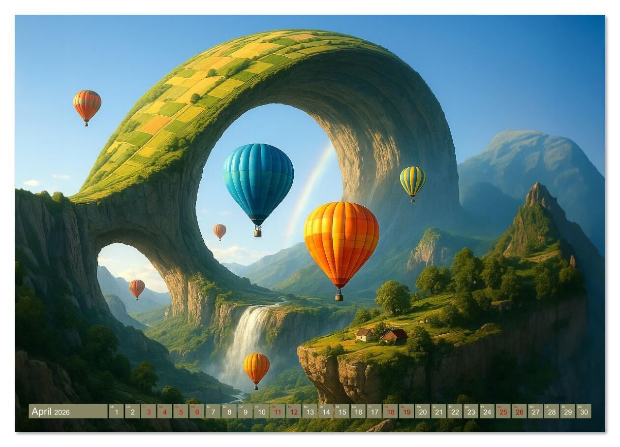 Ballonfahrt durch surreale Welten (hochwertiger Premium Wandkalender 2026 DIN A2 quer), Kunstdruck in Hochglanz