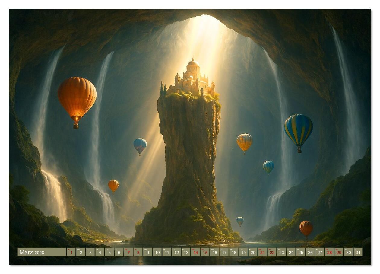 Ballonfahrt durch surreale Welten (Wandkalender 2026 DIN A4 quer), CALVENDO Monatskalender