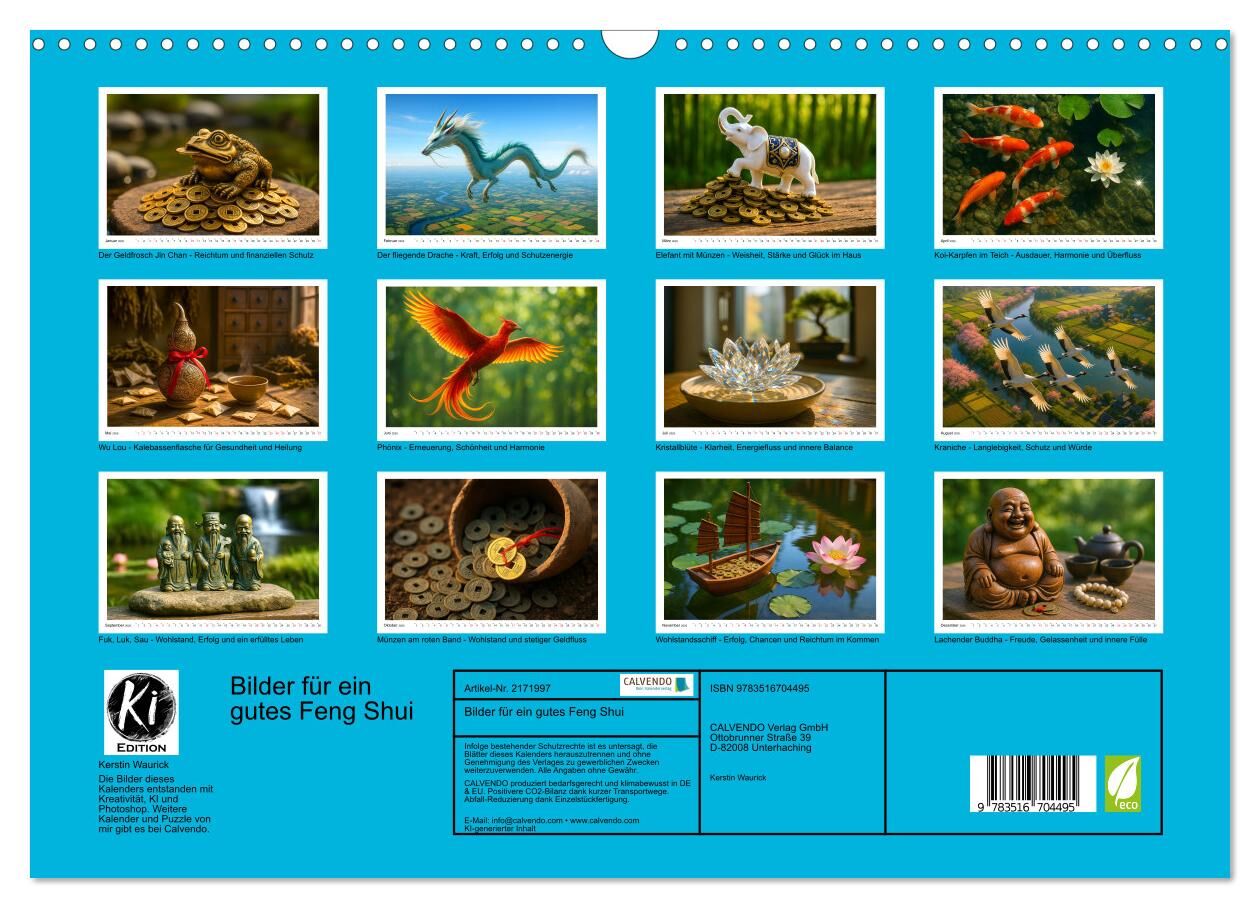 Dieser Kalender zeigt zwölf kraftvolle Symbole des Feng Shui - in stimmungsvollen Bildern, von KI geschaffen, die das Wesentliche sprechen lassen. Monat für Monat entfalten die Darstellungen ihre eigene Energie und erinnern daran, wie wichtig ein harmonischer ...