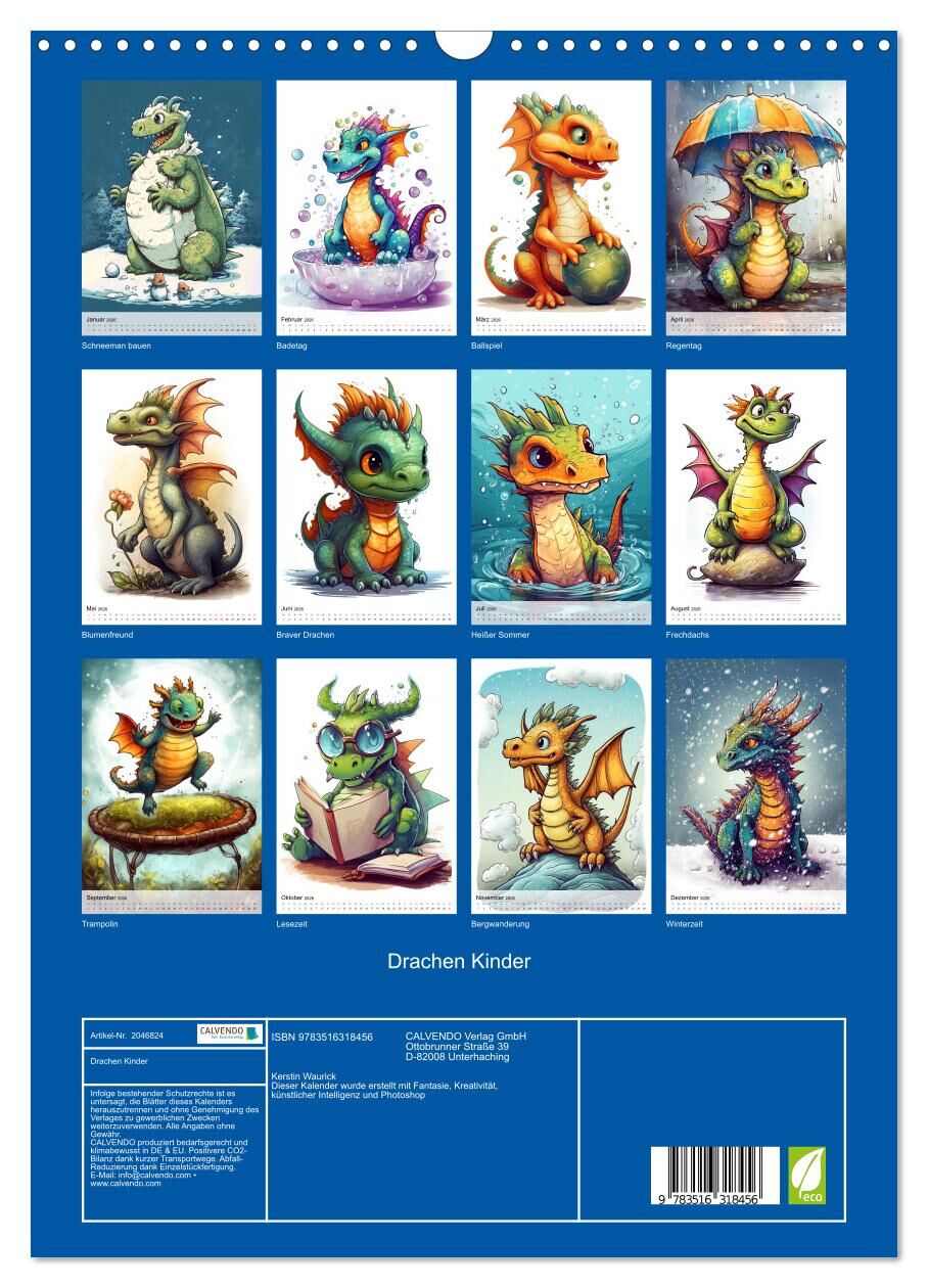 Die gefährlichen Drachen haben auch mal klein angefangen und mussten alles lernen, was man im Leben braucht. Dabei hatten sie scheinbar aber auch viel Spaß und zeigen das in diesem Kalender. Die Bilder dieses Kalenders wurden erstellt mit Fantasie, Kreativität...