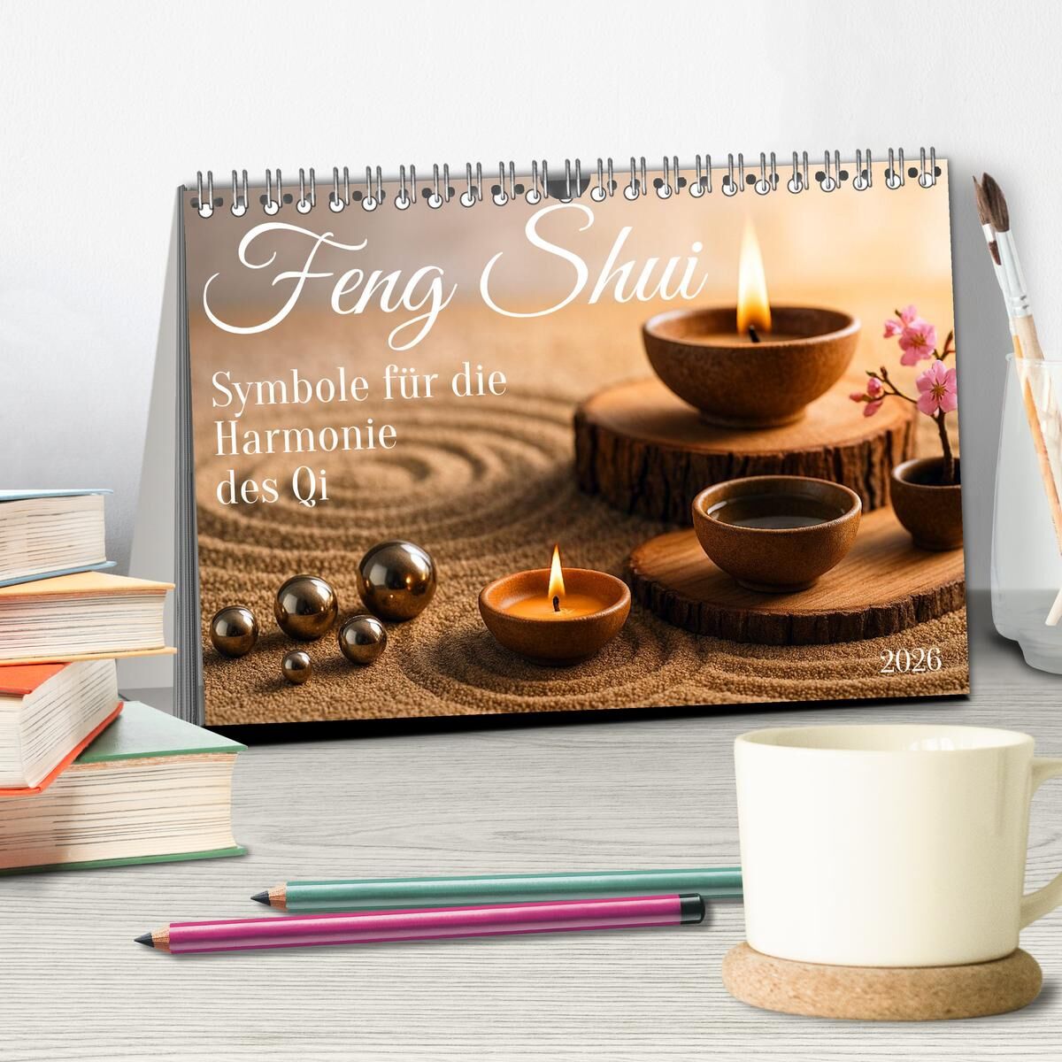 Feng Shui - Symbole für die Harmonie des Qi (Tischkalender 2026 DIN A5 quer), CALVENDO Monatskalender