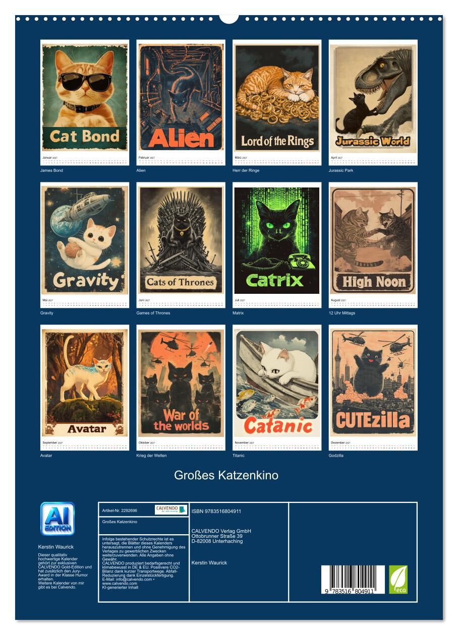 Großes Katzenkino (hochwertiger Premium Wandkalender 2027 DIN A2 hoch), Kunstdruck in Hochglanz
