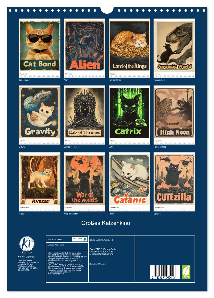 Großes Katzenkino (Wandkalender 2026 DIN A3 hoch), CALVENDO Monatskalender