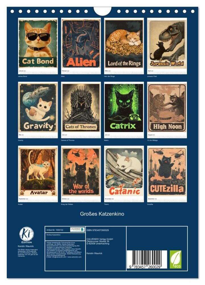 Großes Katzenkino (Wandkalender 2026 DIN A4 hoch), CALVENDO Monatskalender