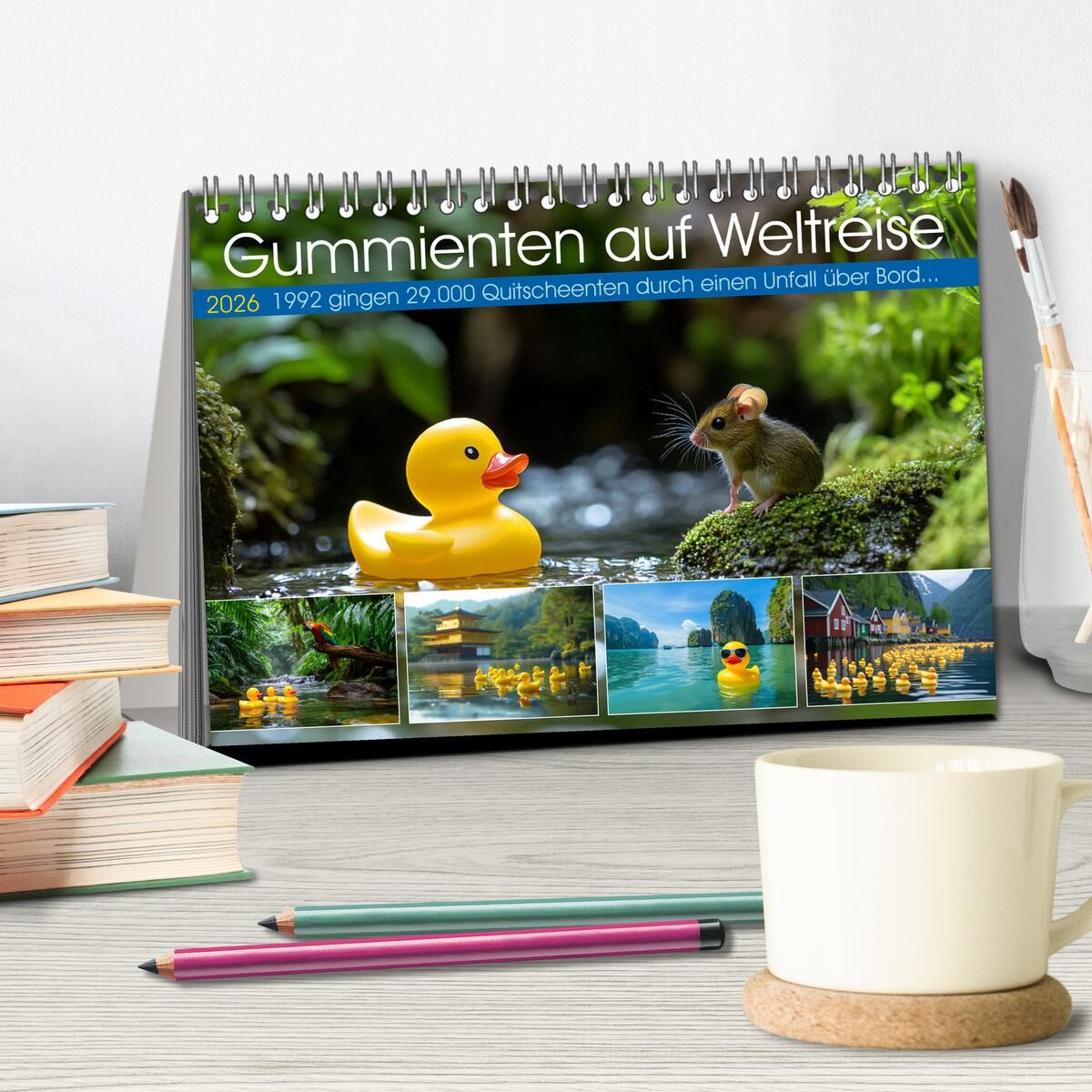 Gummienten auf Weltreise (Tischkalender 2026 DIN A5 quer), CALVENDO Monatskalender