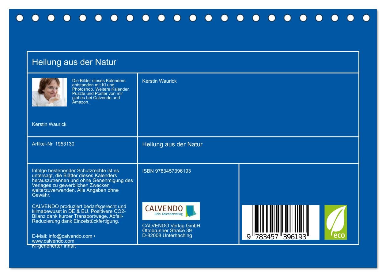 Tauchen Sie ein in die Welt der Naturheilkunde mit unserem einzigartigen Kalender, der die faszinierende Vielfalt und Heilkraft der Natur zeigt. Jeder Monat bietet Ihnen inspirierende Bilder und wertvolle Informationen über natürliche Heilmittel, alternative H...