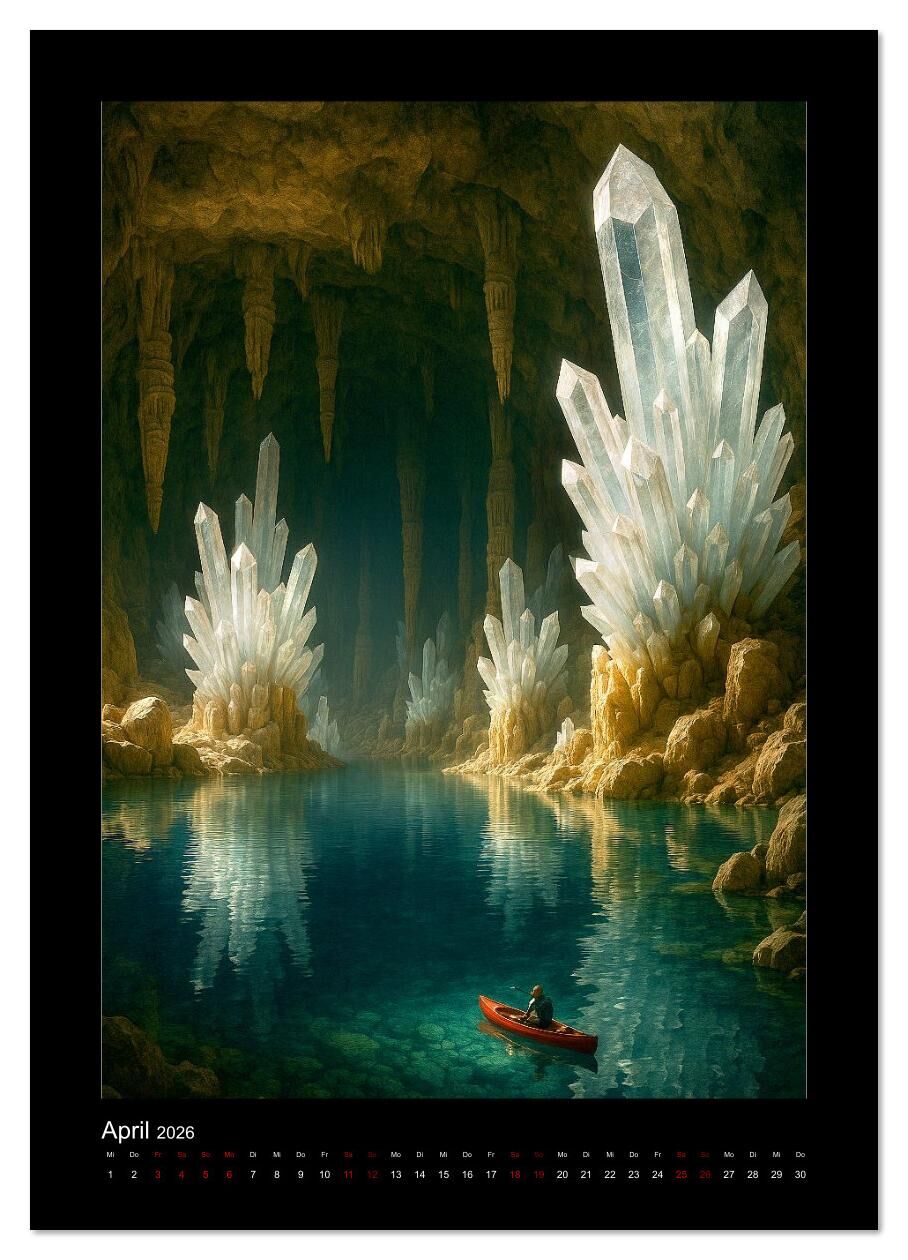 Mit Hilfe von KI gestaltete Bildwelten führen tief unter die Erde dorthin, wo Licht auf Stein trifft und Stille Form annimmt. Riesige Tropfsteinhallen, glitzernde Kristalle und einsame Forscher begegnen sich in Szenen voller Ehrfurcht. Jede Aufnahme erzählt vo...
