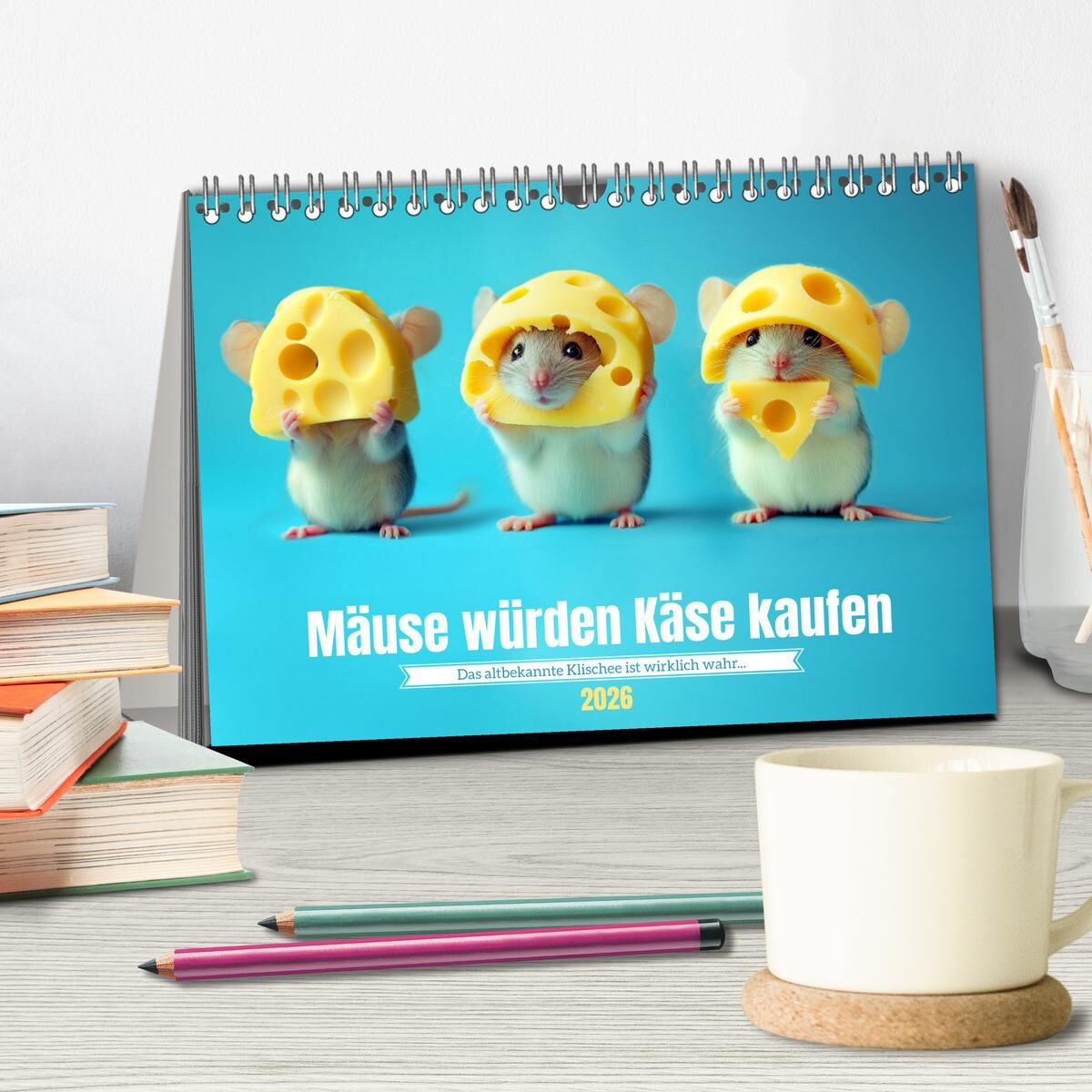 Mäuse würden Käse kaufen (Tischkalender 2026 DIN A5 quer), CALVENDO Monatskalender