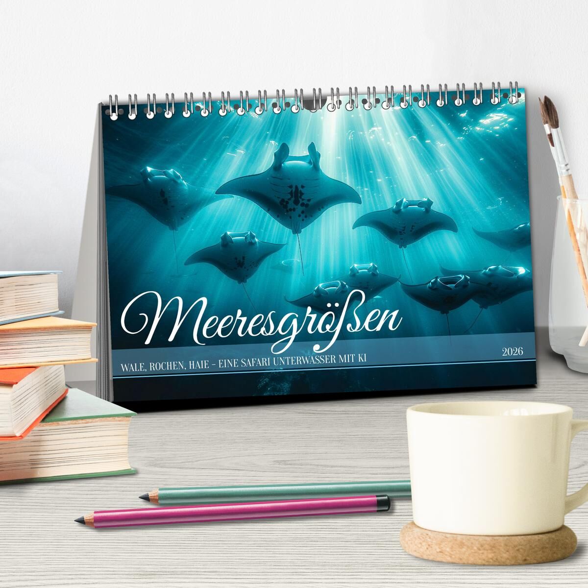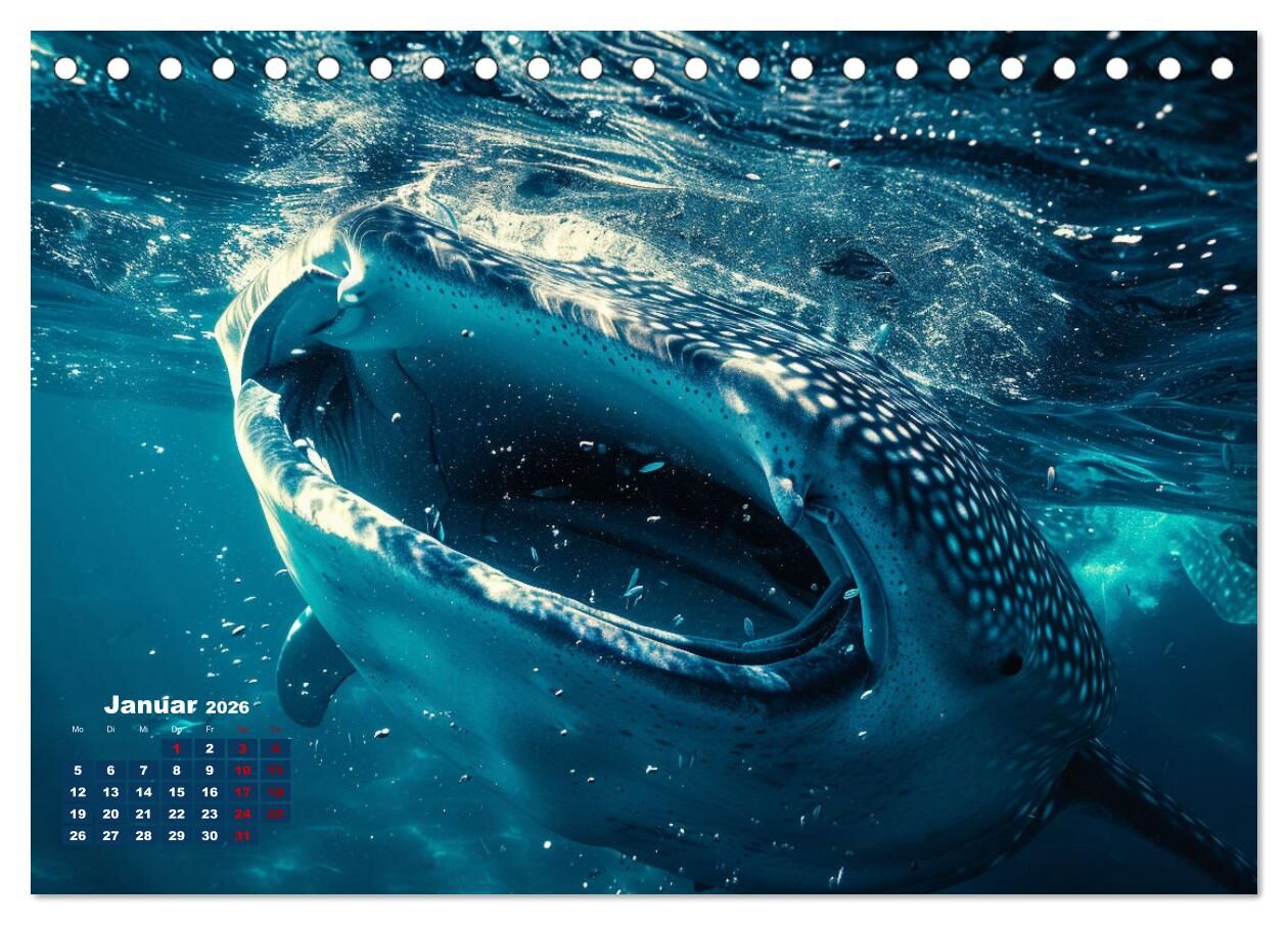 Entdecken Sie die majestätische Schönheit der Großen des Meeres mit unserem Kalender 'Meeresgrößen'! Jedes Bild in diesem einzigartigen Kalender wurde mit Hilfe künstlicher Intelligenz geschaffen und präsentiert die faszinierende Welt von Walen, Rochen und Hai...