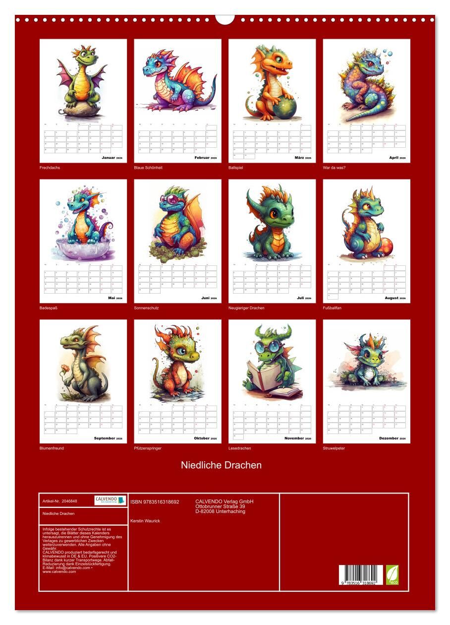 Die gefährlichen Drachen haben auch mal klein angefangen und mussten alles lernen, was man im Leben braucht. Dabei hatten sie scheinbar aber auch viel Spaß und zeigen das in diesem Kalender. Die Bilder dieses Kalenders wurden erstellt mit Fantasie, Kreativität...