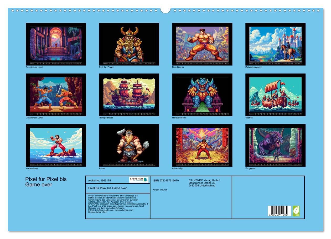 Pixel für Pixel bis Game over (Wandkalender 2026 DIN A2 quer), CALVENDO Monatskalender