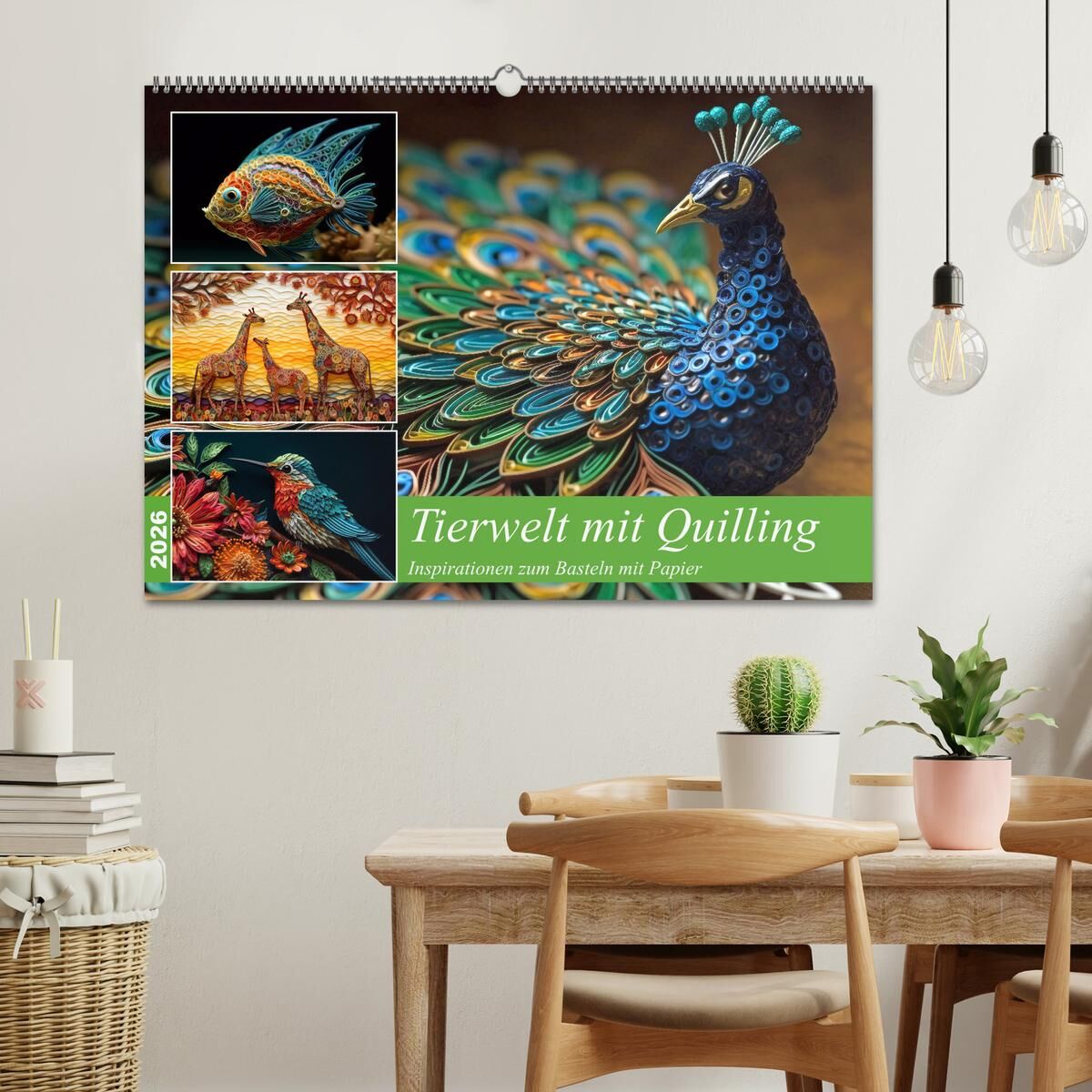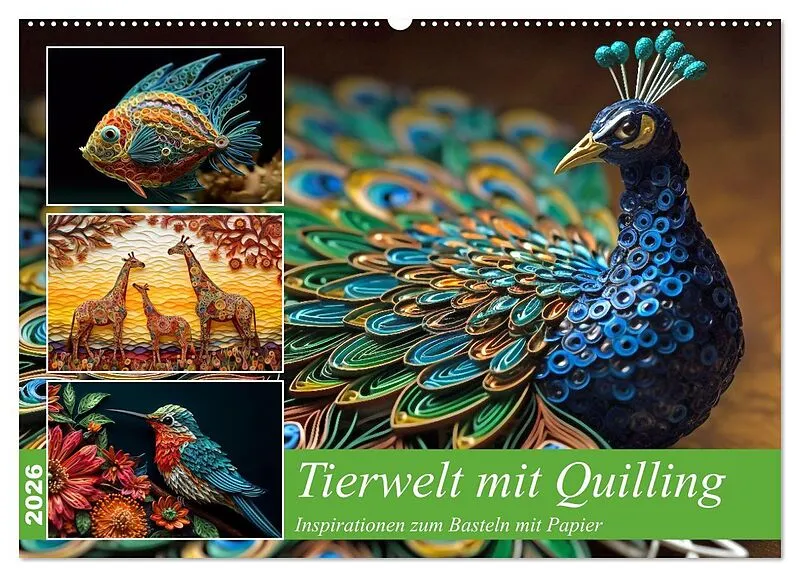 Tierwelt mit Quilling (Wandkalender 2026 DIN A2 quer), CALVENDO Monatskalender