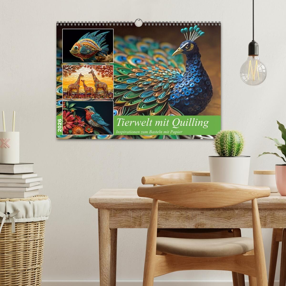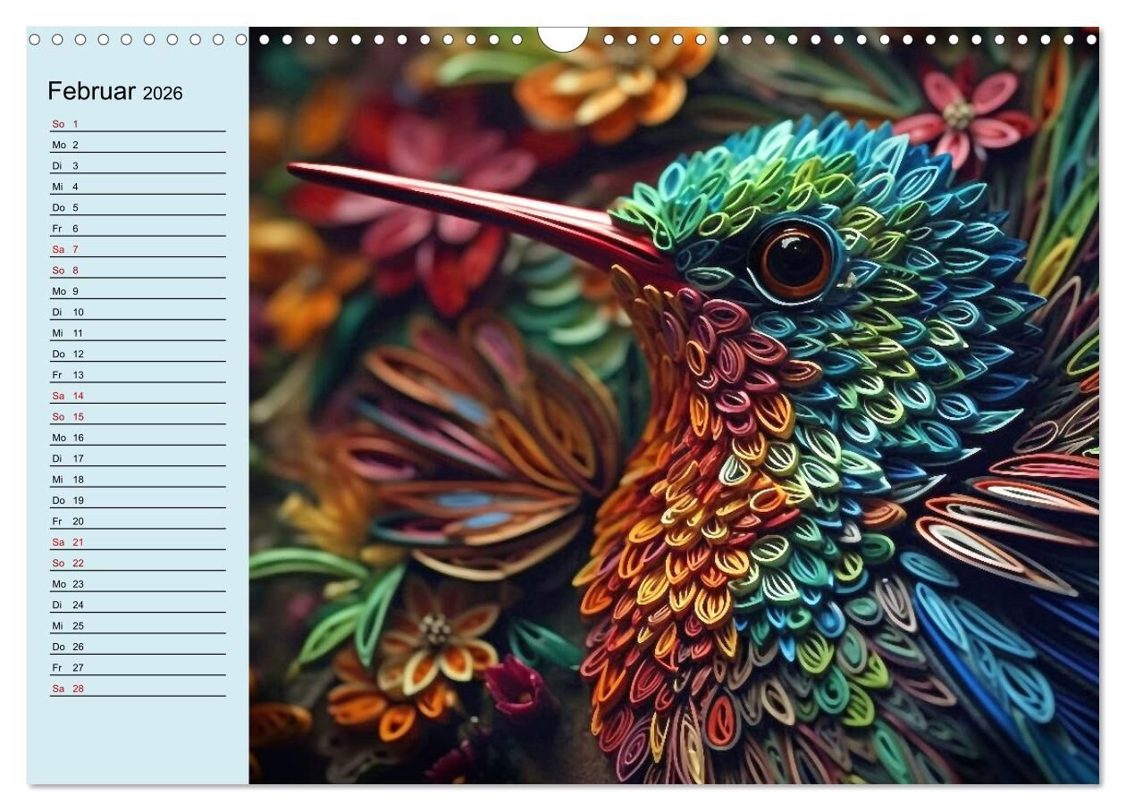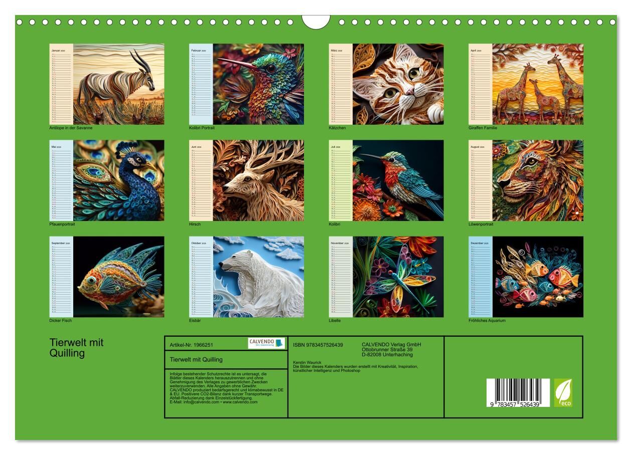 Tierwelt mit Quilling (Wandkalender 2026 DIN A3 quer), CALVENDO Monatskalender