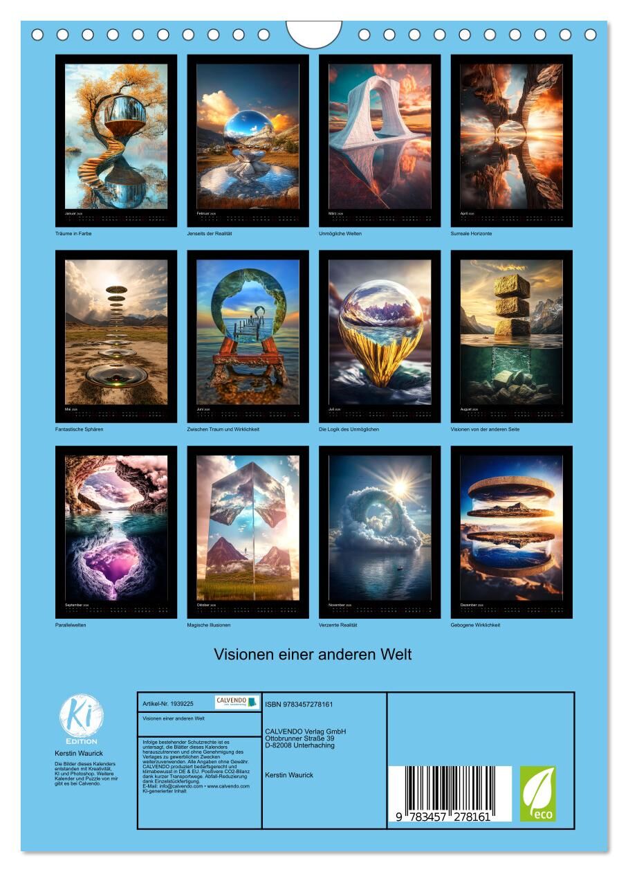 Tauche ein in eine Welt, in der Realität und Fantasie verschmelzen! Dieser Kalender entführt dich in surreale Landschaften voller unmöglicher Kombinationen, riesiger Objekte, winziger Menschen und traumhafter Szenarien inspiriert von den großen Visionären des ...
