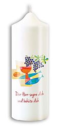 Diese große Kerze ist zu vielen christlichen Feiern Tages-, Jahres- oder Lebenskreis ein passendes Geschenk. Liebevoll gestaltet mit farbenfrohen christlichen Symbolen und dem Segensspruch »Der Herr segne dich« vermittelt die Kerze beste Wünsche für ein Leben ...