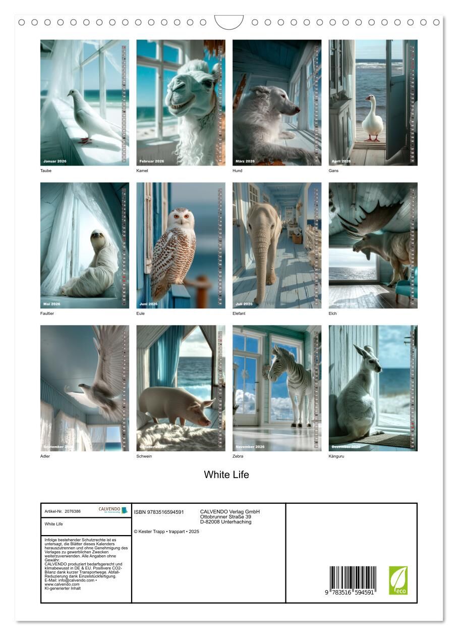 White Life (Wandkalender 2026 DIN A3 hoch), CALVENDO Monatskalender
