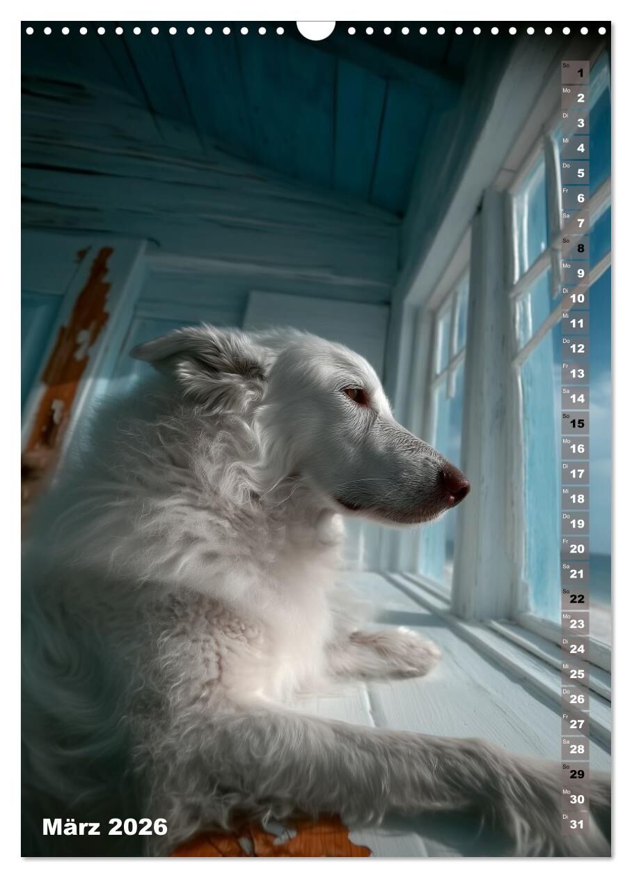 Dieser außergewöhnliche Kalender entführt dich jeden Monat in lichtdurchflutete Küstenhütten, in denen Tiere wie stille Beobachter in träumerischen Szenerien erscheinen. Zwischen hellem Holz, Meerblick und sanften Blautönen entsteht eine poetische Atmosphäre r...