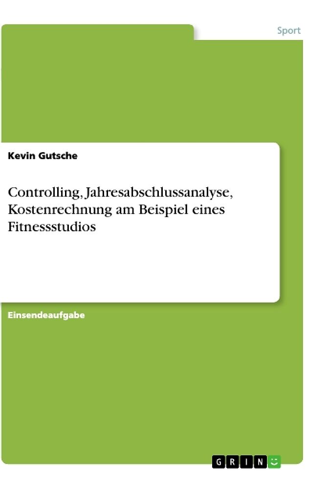 Einsendeaufgabe aus dem Jahr 2015 im Fachbereich Gesundheit - Sport - Sportökonomie, Sportmanagement, Note: 1,2, Deutsche Hochschule für Prävention und Gesundheitsmanagement GmbH, Sprache: Deutsch, Abstract: Diese Einsendeaufgabe umfasst das Thema Controlling,...