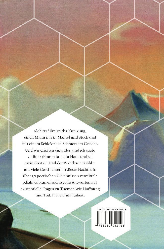 »Ich traf ihn an der Kreuzung, einen Mann nur in Mantel und Stock und mit einem Schleier aus Schmerz im Gesicht. Und wir grüßten einander, und ich sagte zu ihm: Komm in mein Haus und sei mein Gast. Und der Wanderer erzählte uns viele Geschichten in dieser Nach...