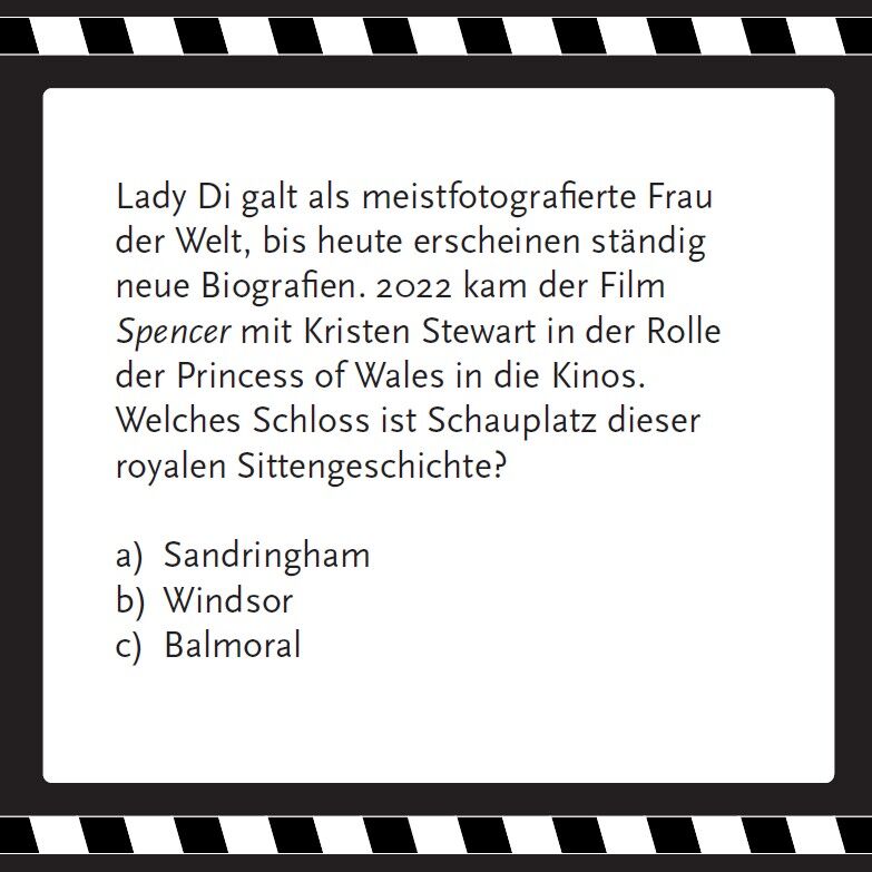 Mit welchem Song wird Bill Murray in Täglich grüßt das Murmeltier geweckt? Wie heißt der Chef-Elefant im Dschungelbuch? Und aus welchem Film stammt die misstrauische Erkundigung, ob Weibsvolk anwesend sei? Schnappen Sie sich eine Tüte Popcorn und testen Sie I...