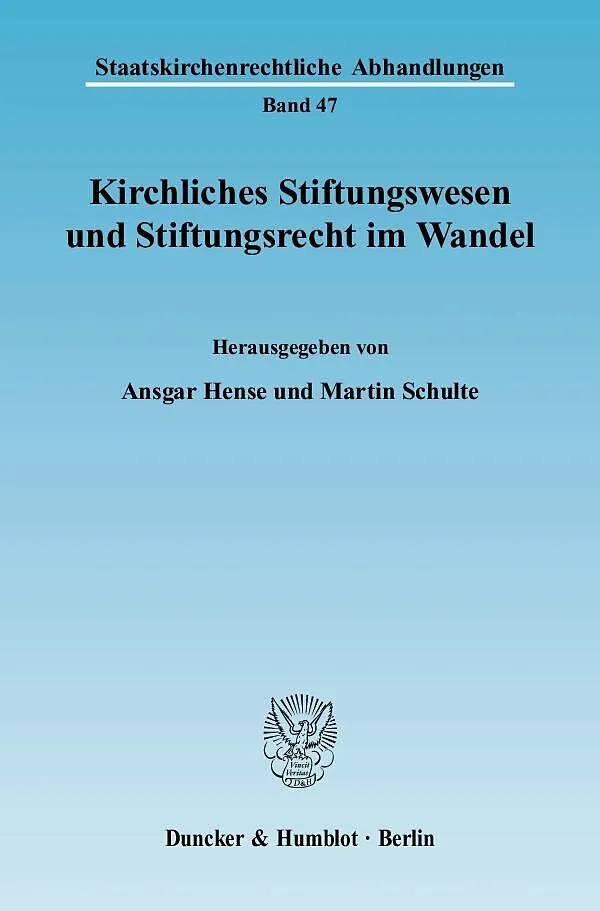 Inhalt: A. Hense, Vergangenheit, Gegenwart, Zukunft kirchlicher Stiftungen: einleitende Bemerkungen - I. Historische Grundlagen des kirchlichen Stiftungswesens: B. Scheller, Memoria, Caritas und das Problem der Dauer. Wahlverwandtschaften zwischen den Stiftungen und der Kirche im Mittelalter - A. Fiedler, Kirchliche Stiftungen zwischen Säkularisierung und Rekonfessionalisierung - II. Die kirchliche Stiftungslandschaft: K. Meyer, Katholische Stiftungslandschaft in Deutschland - R. Rausch, Die evangelische Stiftungslandschaft in Mecklenburg - W. Mensing, Caritative Unternehmen katholischer Kirchengemeinden und der Stiftergedanke - III. Die wirtschaftlichen Rahmenbedingungen des kirchlichen Stiftungswesens: C. Opelt, Ökonomische Herausforderungen und Bedürfnisse von Stiftungen - J. Liesner, Innovative Investmentansätze für Stiftungen - F. Grüner / S. Gebhard, Nachhaltige Vermögensverwaltung im Bereich der kirchlichen Stiftungen. Anlage von Stiftungsvermögen im Einklang mit dem kirchlichen Auftrag - IV. Die rechtlichen Grundlagen des kirchlichen Stiftungswesens: H. de Wall, Die verfassungsrechtlichen Rahmenbedingungen der kirchlichen Stiftung - M. Schulte / K. Meyer, Kirchliche Stiftungen im Spannungsfeld von Staat und Kirche - B. M. Risch, Kirchliche Stiftungen in den (novellierten) Landesstiftungsgesetzen - R. Giesen, Kirchliche Stiftungen und kirchliches Arbeitsrecht