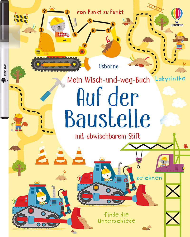 Viele Labyrinthe, Finde-den-Unterschied- und Punkt-zu-Punkt-Rätsel sorgen für jede Menge Spaß. Auf der Baustelle ist viel los! Sieh den emsigen Arbeitern zu und hilf ihnen dabei, ein Dach zu decken oder eine Schaukel aufzubauen. Viele Labyrinthe, Finde-den-Un...