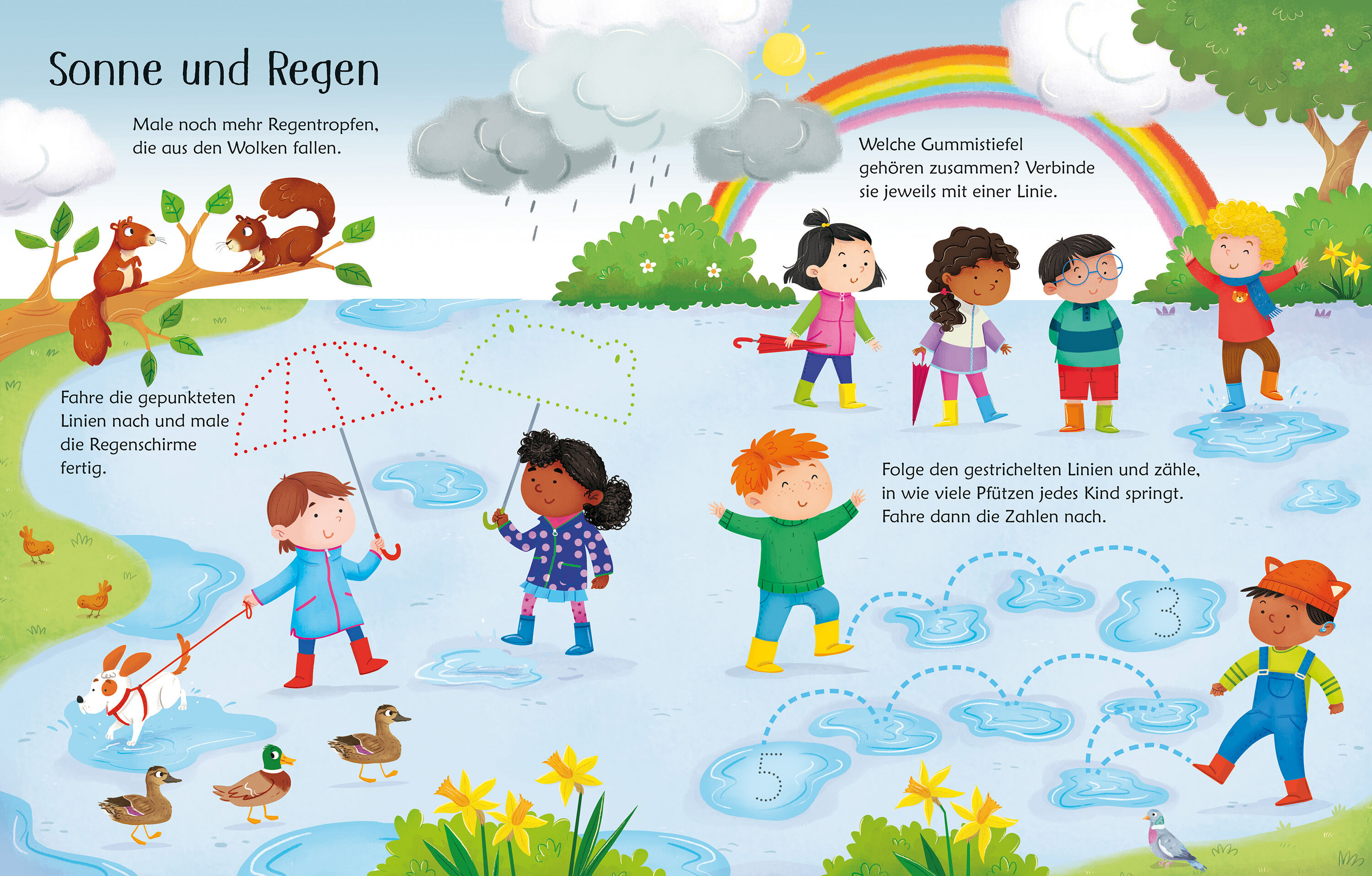 Mal- und Rätselaufgaben für das Frühjahr Zeige den Entenküken den Weg zu ihrer Mama, zähle die Bienen und male die Seerosenblätter fertig. Hier gibt es jede Menge Zähl-, Such- und Schwungübungsspaß. Und falls doch mal was danebengeht: einfach wegwischen und no...