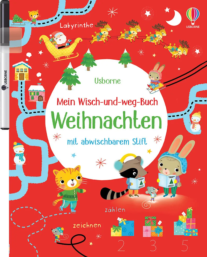 In diesem weihnachtlichen Buch finden Kinder Labyrinthe, Finde-den-Unterschied- und Punkt-zu-Punkt-Rätsel. Zahlen und Linien zum Nachfahren üben den sicheren Umgang mit dem Stift. Und falls doch mal was danebengeht: einfach wegwischen und noch mal versuchen. ...
