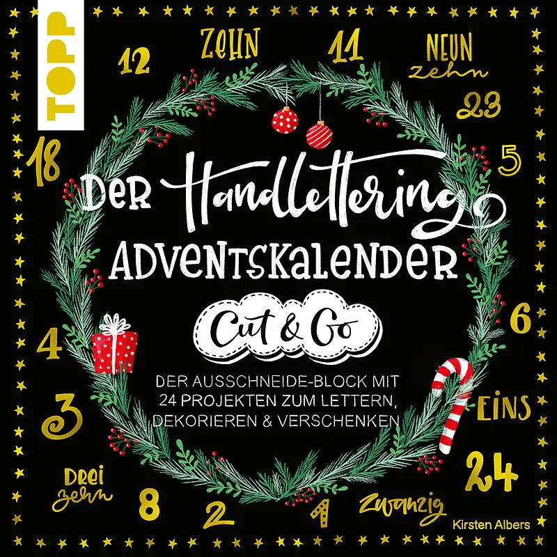 Türchen öffnen, loslettern, ausschneiden und verschenken - oder gleich selbst als Weihnachtsdekoration aufhängen! In diesem Adventskalender-Block verbirgt sich hinter jedem der 24 Türchen eine kleine Handlettering-Überraschung. Die Doppelseiten sind zunächst ...
