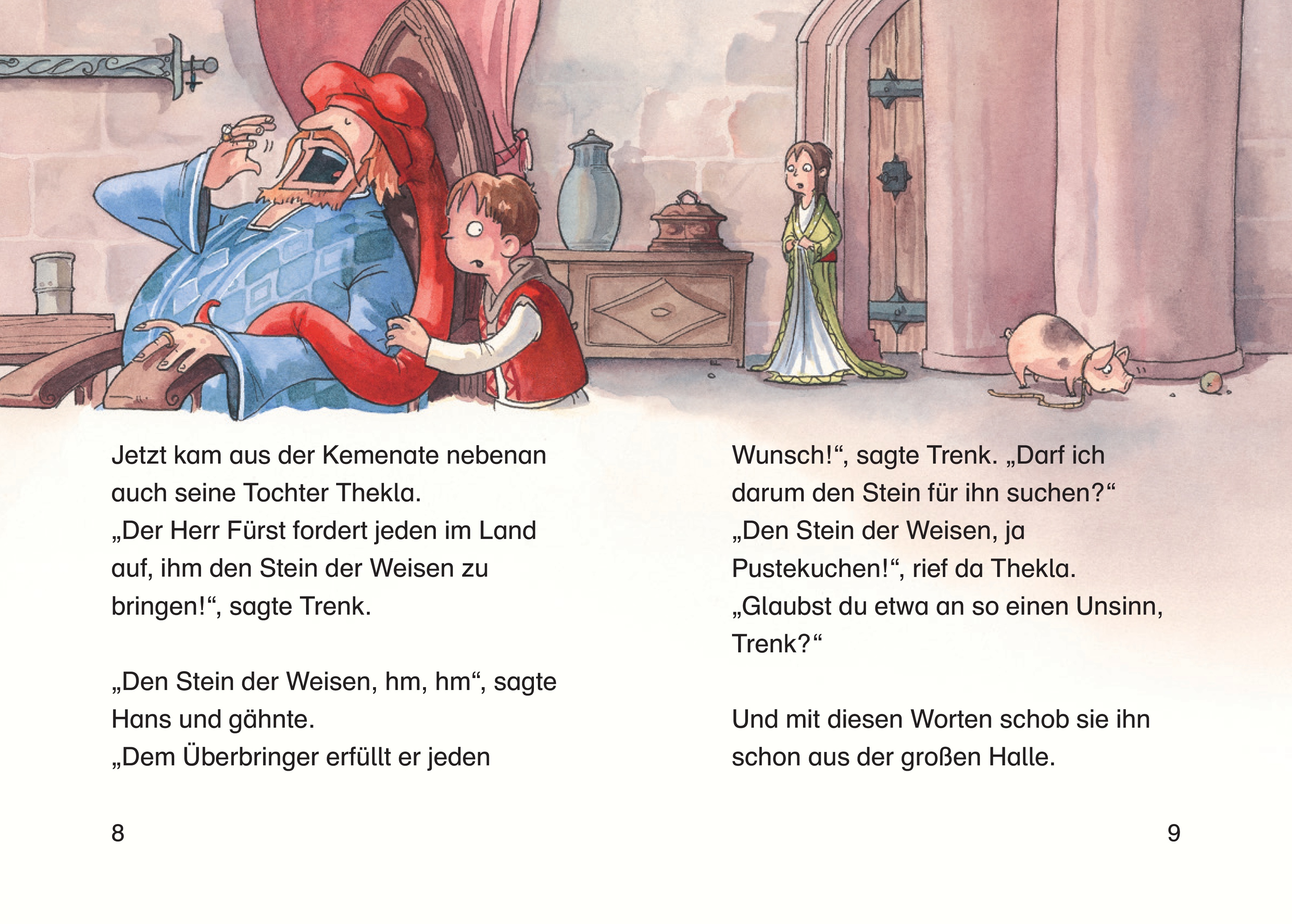 Leselern-Abenteuer mit Kirsten Boies Ritter Trenk! Trenk ist glücklich, denn gerade hat der Herr Fürst verkündet, dass er demjenigen, der den Stein der Weisen findet, jeden Wunsch erfüllt. Das ist doch die Gelegenheit, Trenks Familie aus der Leibeigenschaft z...