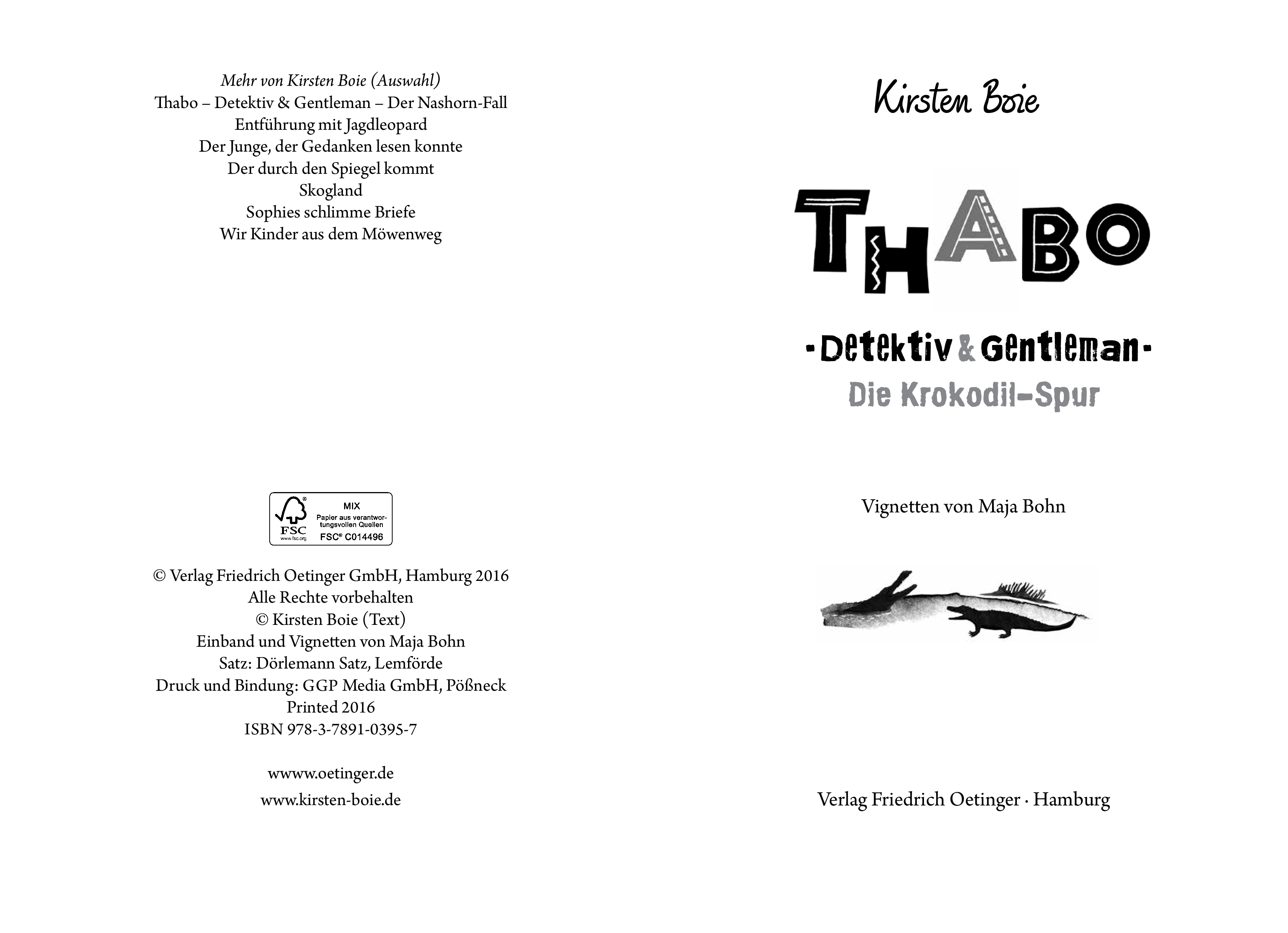 In "Thabo. Detektiv & Gentleman 2. Die Krokodil-Spur" von Kirsten Boie verschwindet die kleine Delighty spurlos, was Thabo und seine Freunde vor ein großes Rätsel stellt. Die besorgniserregende Frage, ob sie vielleicht Krokodilen zum Opfer gefallen sein k...