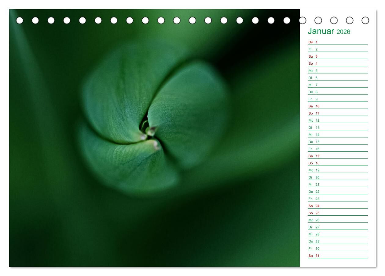 Grün Makrofotografien aus der grünen Welt der Pflanzen als Monatsplaner (Tischkalender 2026 DIN A5 quer), CALVENDO Monatskalender