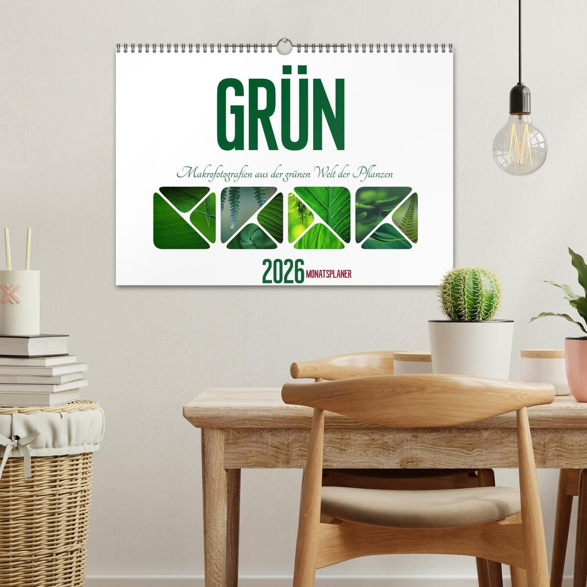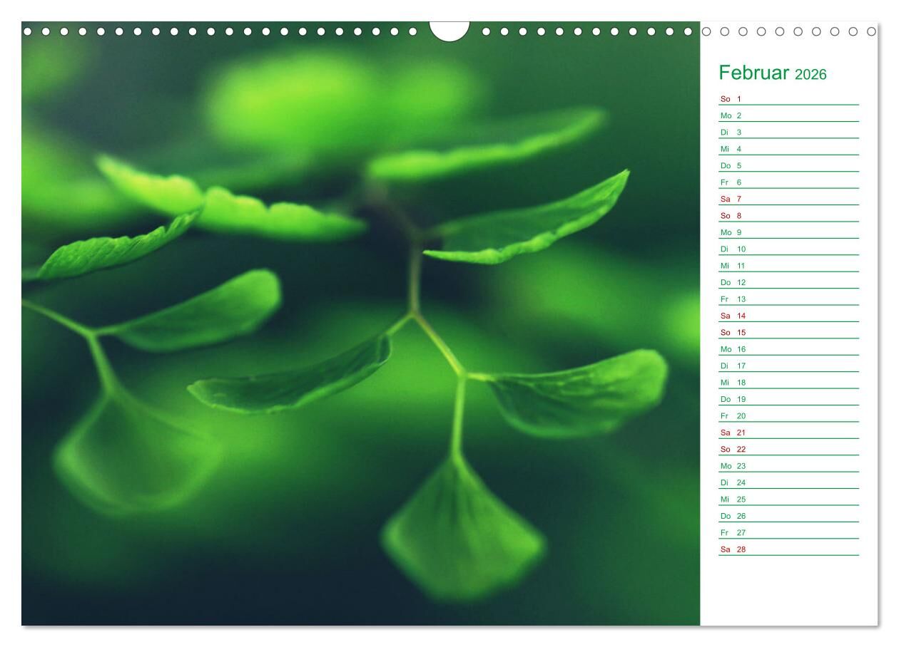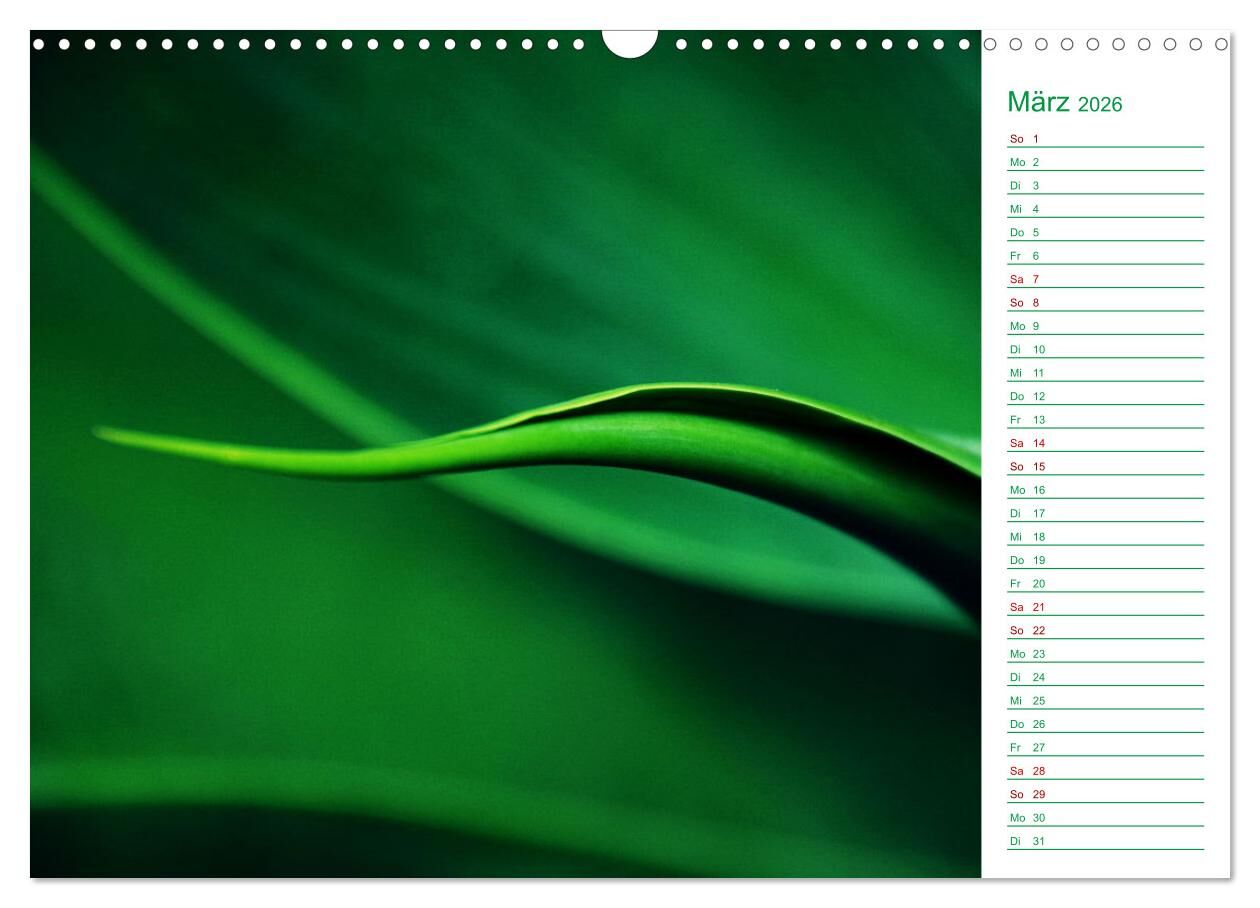 Grün Makrofotografien aus der grünen Welt der Pflanzen als Monatsplaner (Wandkalender 2026 DIN A3 quer), CALVENDO Monatskalender