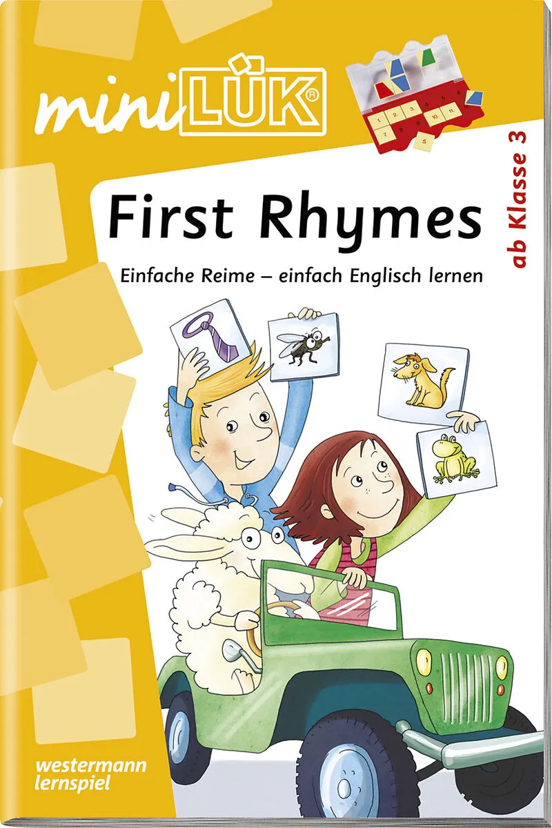 Mit Reimwörtern Englisch lernen? Auf jeden Fall! Das miniLÜK-Übungsheft " First Rhymes " richtet sich mit fröhlichen Zuordnungsübungen mit englischen Reimwörtern an Sprachanfänger . Dabei fördern die Reime die Merkleistung und das bewährte LÜK-Prinzip die Ler...