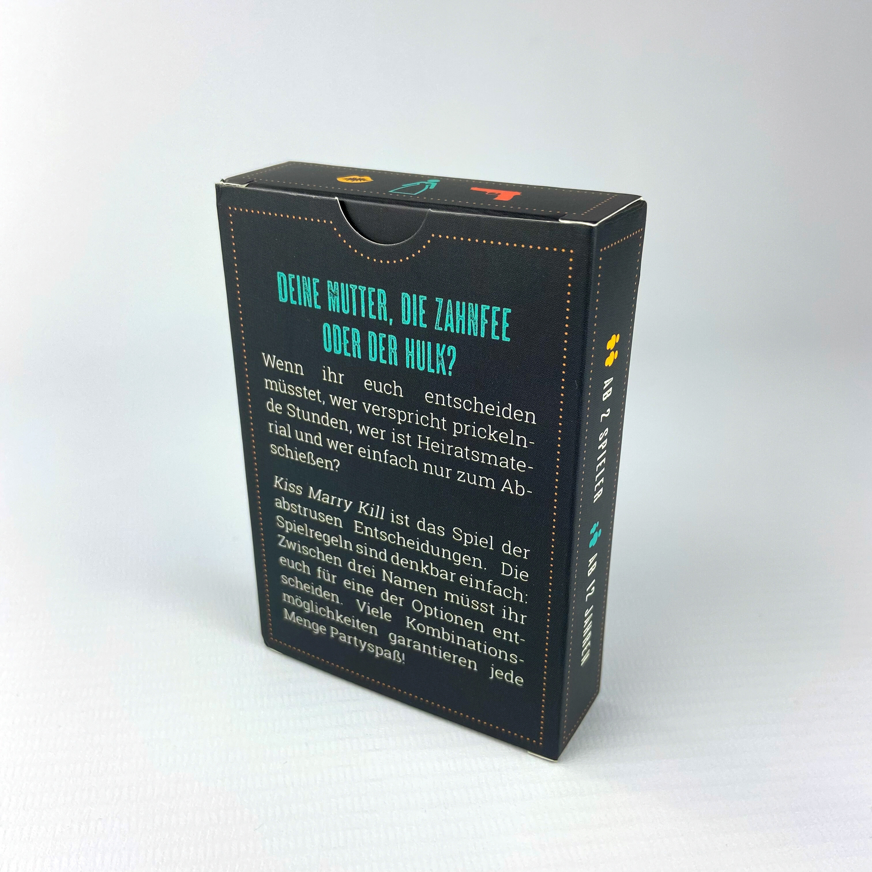 Deine Mutter, die Zahnfee oder der Hulk wenn du dich entscheiden müsstest, wer verspricht prickelnde Stunden, wer ist Heiratsmaterial und wer ist einfach nur zum Abschießen? Kiss Marry Kill ist das Spiel der abstrusen Entscheidungen mit Spaßgarantie. Zwischen ...