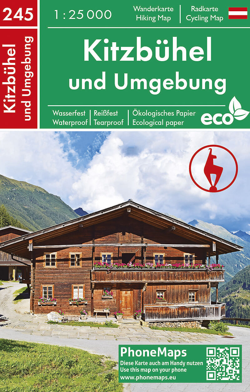 Die Wanderkarte Kitzbühel und Umgebung im Maßstab 1:25 000, von Edition PhoneMaps, zeigt die Region um Kitzbühel. Die Wanderkarte enthält markierte Wander- und Radwege sowie Wander und Radinformationen. Die Karte ist auf einem innovativen ökologischen Papier p...