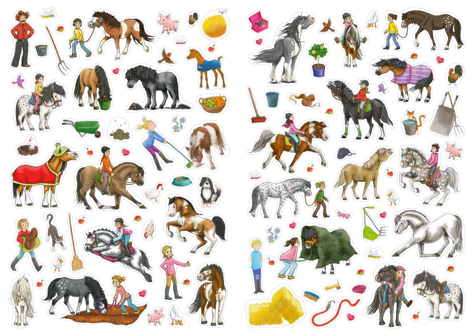 Pferdesticker satt - in diesem Stickerbuch für Pferdefans Mehr als 400 Sticker mit großen und kleinen, verspielten und braven Pferden zum Aufkleben und Träumen können in den 13 unterschiedlichen Welten im Stickerbuch eingeklebt werden. Bauernhoftiere, Blumen, ...