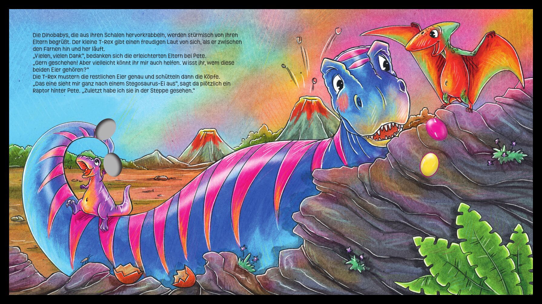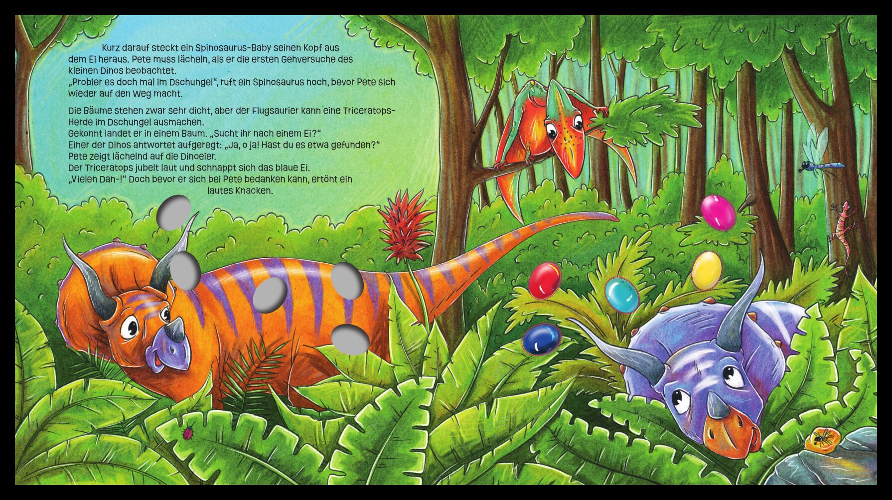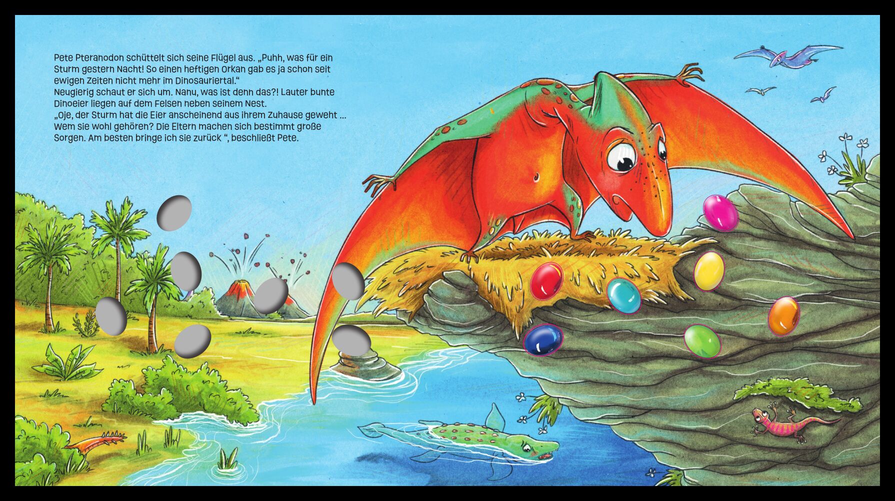 Ein Bilderbuch mit funkelnden Dinoeiern - für Kinder ab 4 Jahren. Ach du Schreck! Wo kommen denn die vielen Eier her?, fragt sich Pete Pteranodon. Der Sturm gestern Nacht hat die Eier wahrscheinlich aus ihren Nestern gefegt und jetzt suchen viele Dinosaurier i...