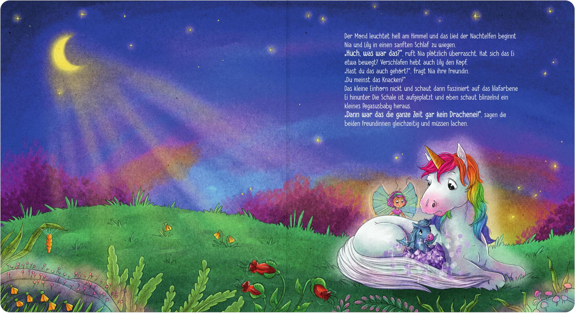 Band 6 der Reihe um Einhorn Nia und Fee Lily: Einhorn Nia und Fee Lily wollten eigentlich nur eine Runde im Silbersee plantschen, als sie plötzlich ein glitzerndes Drachen-Ei finden. Wem das wohl gehört? Sie machen sich auf die Suche. Ein magisches Bilderbuch ...