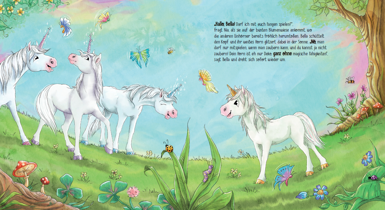 Nia und Lily im Einhornland: Ein zauberhaftes Bilderbuch für Mädchen ab 4 Jahren. Nia ist das einzige Einhorn im Einhornland, das nicht zaubern kann. Die anderen Einhörner machen sich deswegen oft über sie lustig oder lassen sie nicht mitspielen. Zum Glück gib...