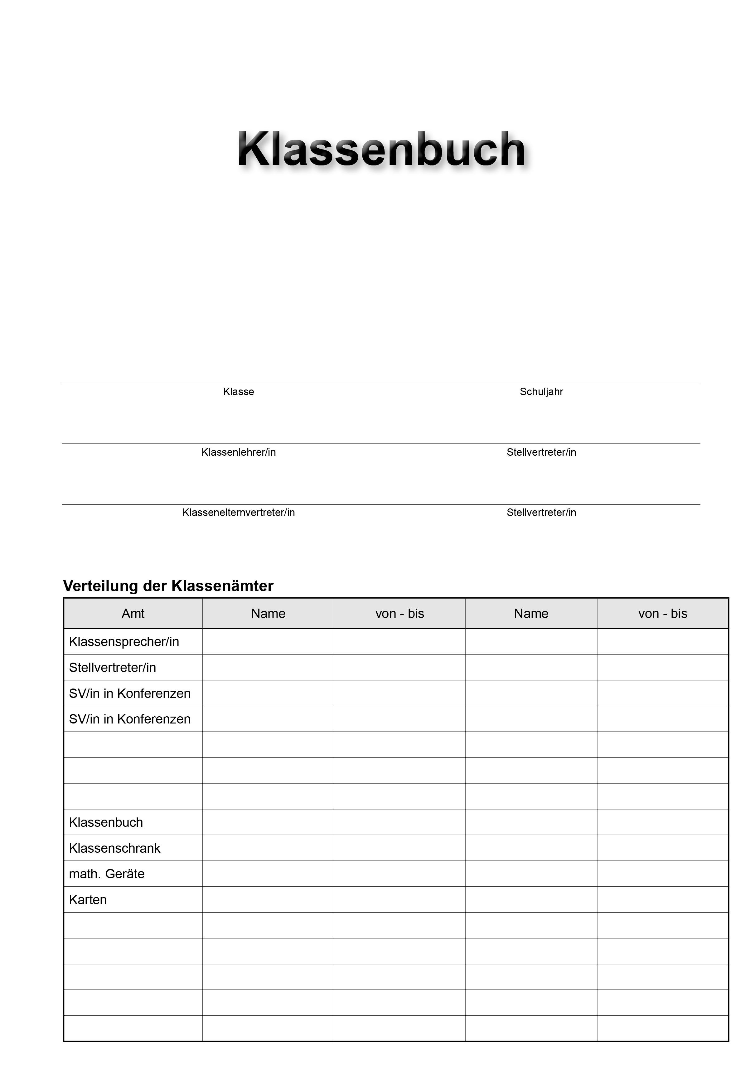 Klassenbuch "Standard" mit festem Bucheinband - für 1 Schuljahr Inhalt: Stundenpläne, Lehrer- und Schülerverzeichnis, monatliche Versäumnisse im Registerschnitt, Wahlunterricht, AG's, Übersicht schriftliche Arbeiten, eingeführte Schulbücher, ausgegebene Lehrmi...
