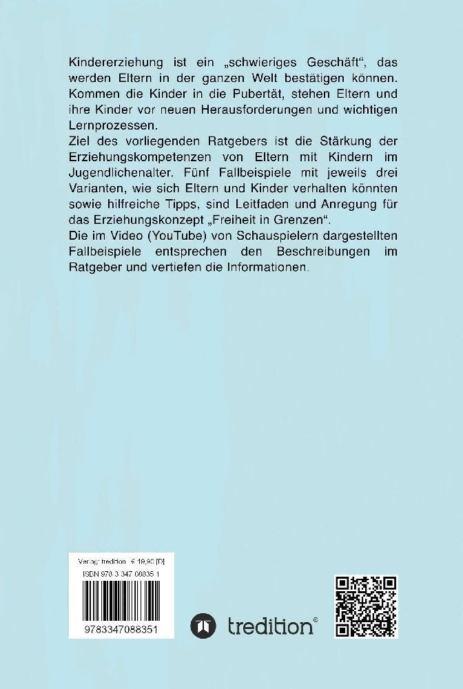 Kindererziehung ist ein schwieriges Geschäft, das werden Eltern in der ganzen Welt bestätigen können. Kommen die Kinder in die Pubertät, stehen Eltern und ihre Kinder vor neuen Herausforderungen und wichtigen Lernprozessen. Ziel des vorliegenden Ratgebers ist ...