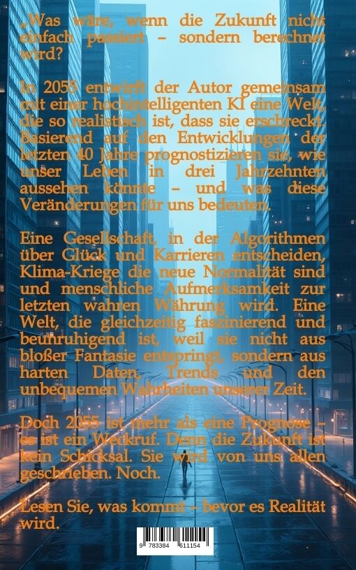 Was wäre, wenn die Zukunft nicht einfach passiert sondern berechnet wird? In 2055 entwirft der Autor gemeinsam mit einer hochintelligenten KI eine Welt, die so realistisch ist, dass sie erschreckt. Basierend auf den Entwicklungen der letzten 40 Jahre prognosti...