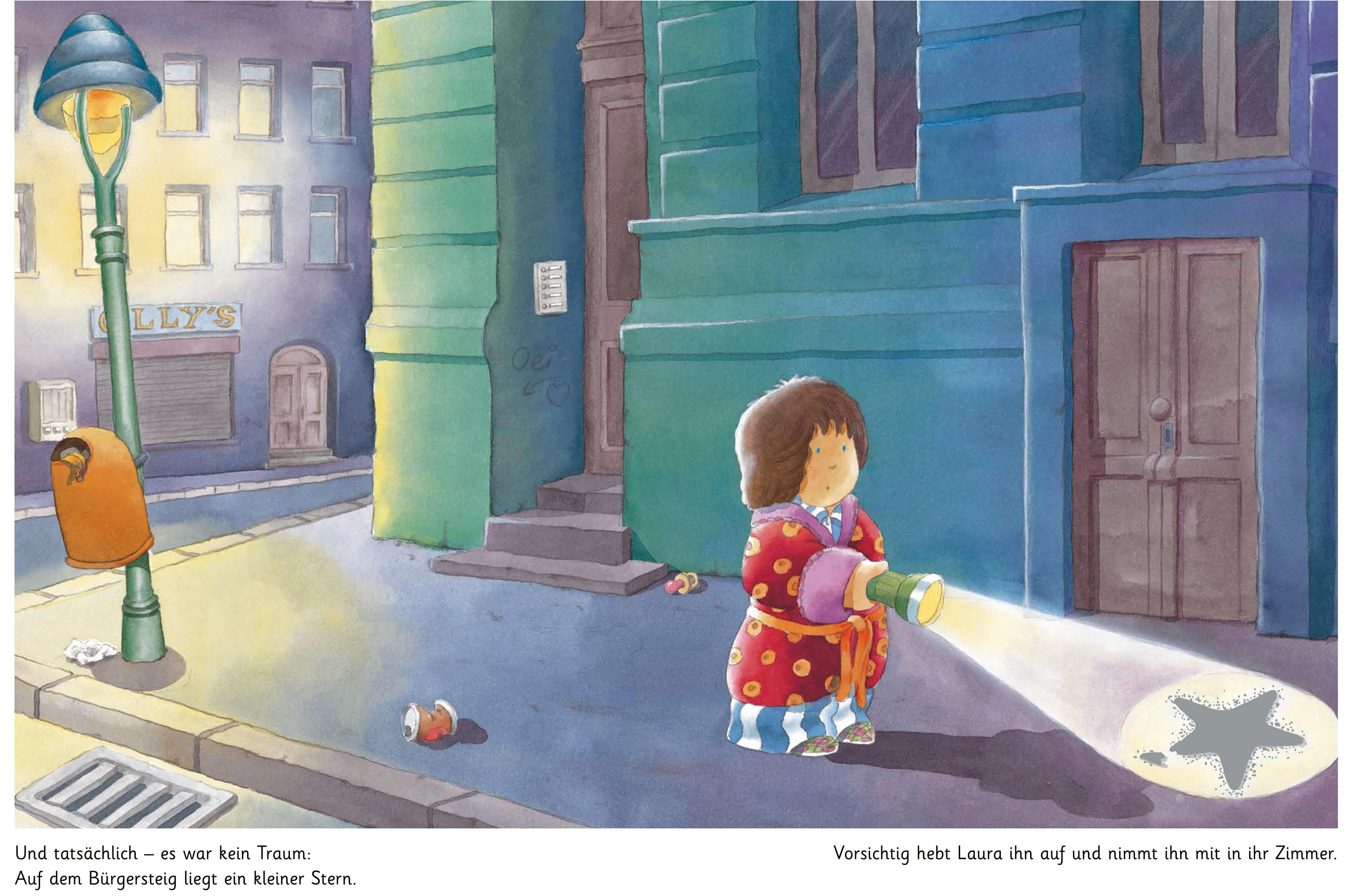 Laura beobachtet nachts, wie ein Stern vom Himmel direkt vor ihr Haus fällt. Doch am Morgen ist er verschwunden. Lauras Stern erzählt einfühlsam, dass man sich manchmal von Dingen trennen muss, die man lieb hat. Das Bilderbuch wurde rund 2,2 Millionen Mal verk...