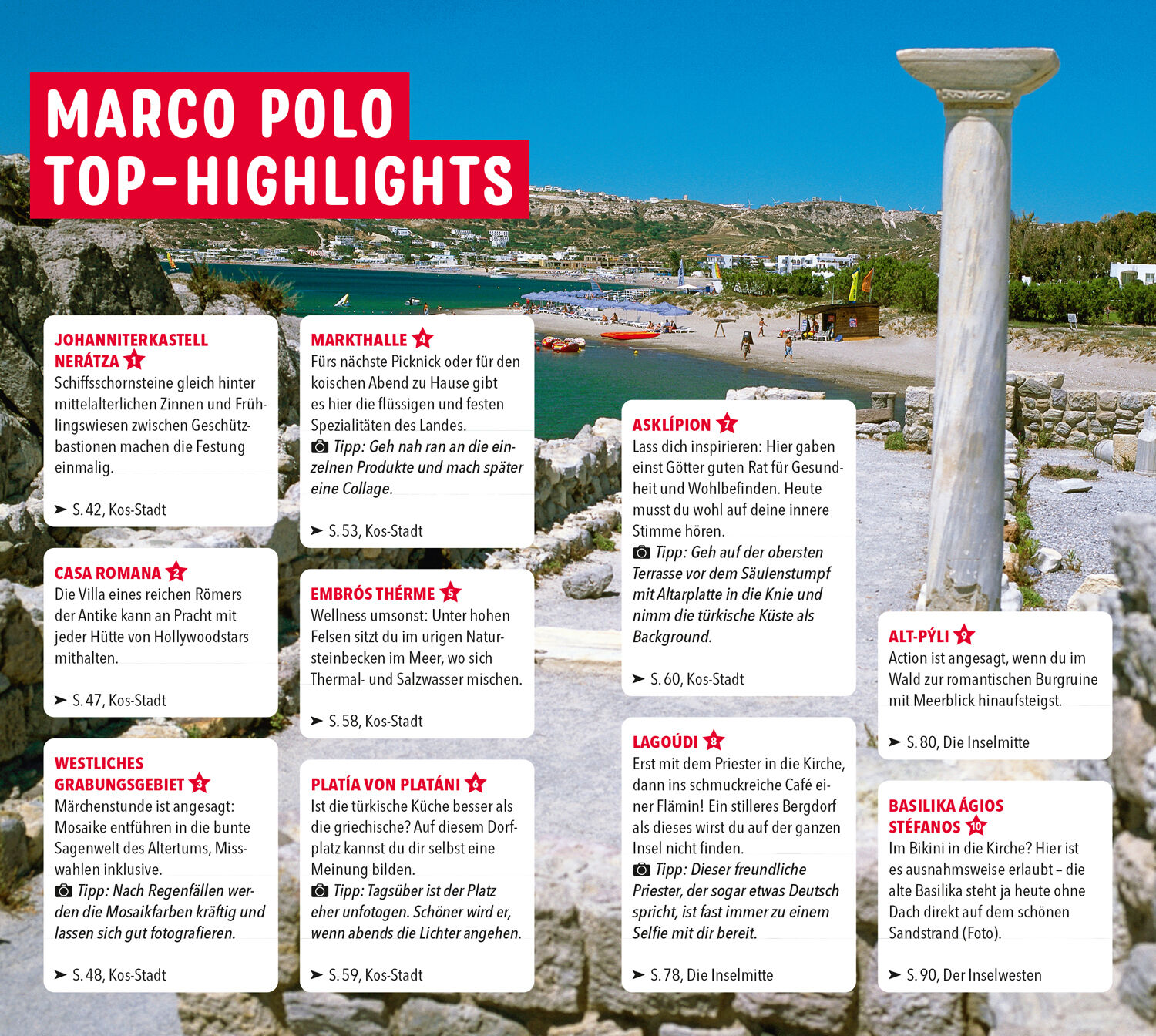 Picknicken mit Pfauen und Kühe streicheln mit dem MARCO POLO Reiseführer Kos Du willst Inselfeeling mit langen Sandstränden, aber ohne große Hotelkolosse, die auf deinen Erinnerungsfotos stören? Dann komm nach Kos! Die kleine Insel in der Ägäis ist überschaub...