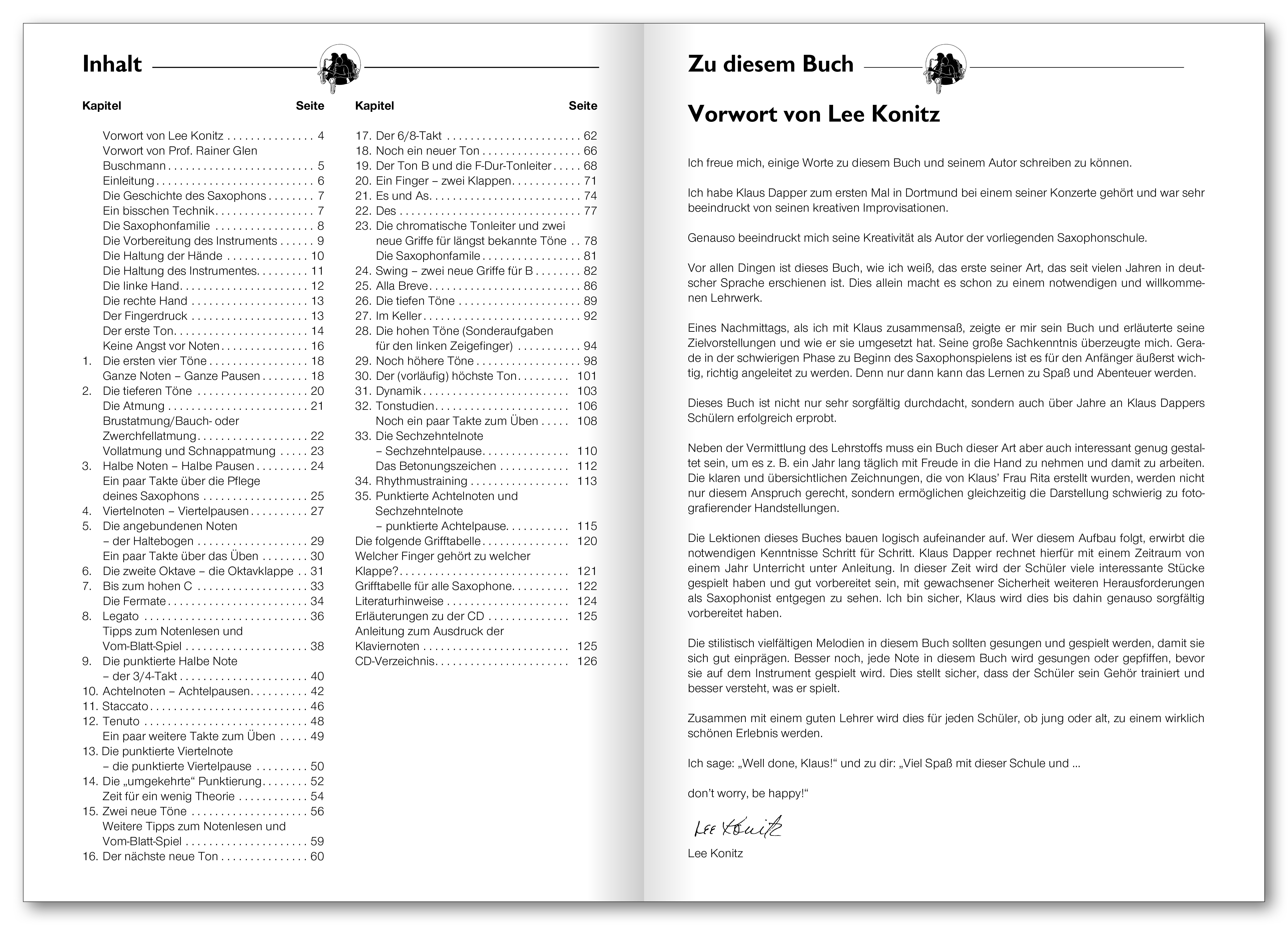 Über 100.000-mal verkauft - und aus gutem Grund! Wer heute Saxophon spielt, will mehr als nur Töne treffen - er will klingen. Ausdrucksstark. Vielseitig. Lebendig. Das Saxophonbuch begleitet dich auf genau diesem Weg. Egal ob du vom mitreißenden Groove des Rock träumst, dich nach der Freiheit des Jazz sehnst, die Energie von Pop spürst oder im Glanz klassischer Konzerte aufgehen willst - dieses Buch öffnet dir all diese musikalischen Türen. Mit 35 Lektionen - ideal abgestimmt auf ein Schuljahr - bringt es Struktur, Klarheit und Motivation in deinen Lernprozess. Vom ersten Ton bis zum Bühnenauftritt. Vom Tanzcombo-Gig bis zur Big Band. Vom Proberaum bis zum Konzertsaal. Du bekommst nicht nur fundierte Übungen für verschiedene Stilrichtungen, sondern auch wertvolle Tipps zu Ansatz, Atmung, Fingertechnik, Tonbildung, Instrumentenpflege und effektivem Üben. Alles, was du brauchst, um dein Spiel auf das nächste Level zu bringen. Und das Beste: Zu den Lektionen gibt's zahlreiche Audio-Tracks und Play-Alongs zum Mitspielen und Eintauchen - ganz einfach per Download. Sogar ausdruckbare Klavierbegleitungen sind dabei, jeweils für Eb und Bb! Jahrelang erprobt und geliebt von Schüler:innen und Lehrer:innen gleichermaßen - dieses Buch ist nicht nur ein Lehrwerk. Es ist dein musikalischer Begleiter. Schritt für Schritt. Ton für Ton. Werde der Saxophonist, der du sein willst - mit Das Saxophonbuch von Klaus Dapper. Empfohlen von: Prof. Rainer Glen Buschmann "Die Lektionen dieses Buchs bauen logisch aufeinander auf. Wer diesem Aufbau folgt, erwirbt die notwendigen Kenntnisse Schritt für Schritt. Dies allein macht es zu einem notwendigen und willkommenen Lehrwerk." Lee Konitz "Eine bemerkenswerte Schule, die durch ihren logischen Aufbau, ihre stilistische Vielfalt bei der Auswahl der Spielstücke und jetzt auch noch durch die Audiotracks (mit ausdruckbarem Notentext!) überzeugt." Günter Priesner, Dozent für klassisches Saxophon, Kammermusik und Fachmethodik an der Hochschule für Musik Nürnberg "Das Saxophon ist auf dem besten Wege, ein Volksinstrument zu werden. Umso erstaunlicher ist es, dass es bisher keine Schule gab, die einerseits den Lehrstoff systematisch und leicht verständlich darbietet, und andererseits ihre Übungsstücke aus allen musikalischen Bereichen nimmt, in denen das Saxophon heute Verwendung findet. Klaus Dapper, selbst gestandener vielseitiger Profi, hat versucht, diese Lücke zu schließen, und er hat das nach meiner Auffassung erfolgreich getan." DIN A4, 160 Seiten, mit praktischer Ringbindung, alle Audio-Tracks und die Klavierbegleitungen für Eb & Bb als Download