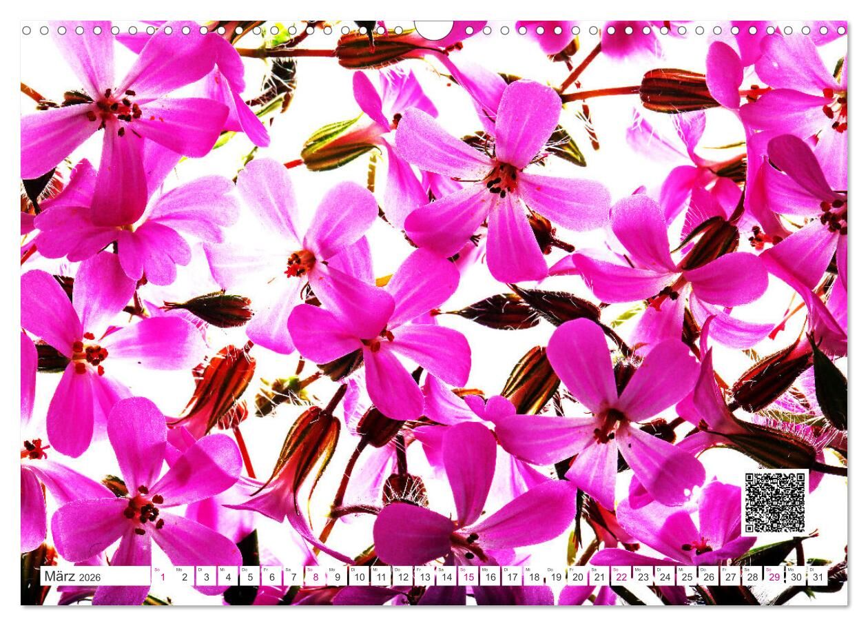 Wunderschöne, helle und farbenfrohe Blütenträume mit selbst komponierter, zauberhafter Klaviermusik zum Download per QR-Code auf jedem Kalenderblatt zum Erholen, Relaxen, Ausruhen und sich einfach Freuen.