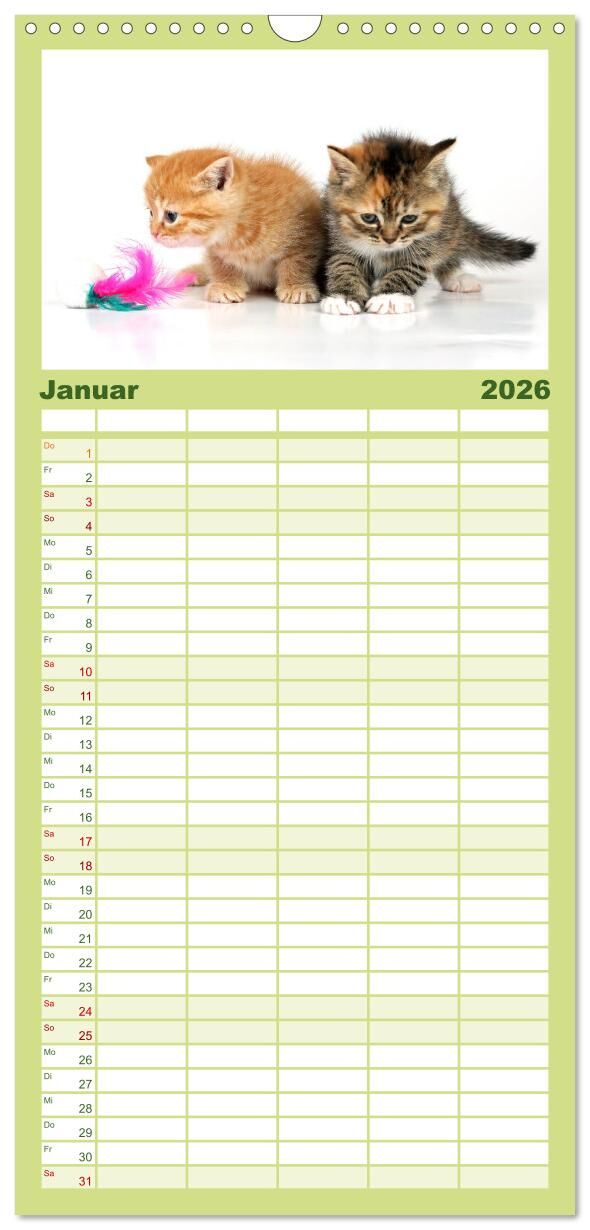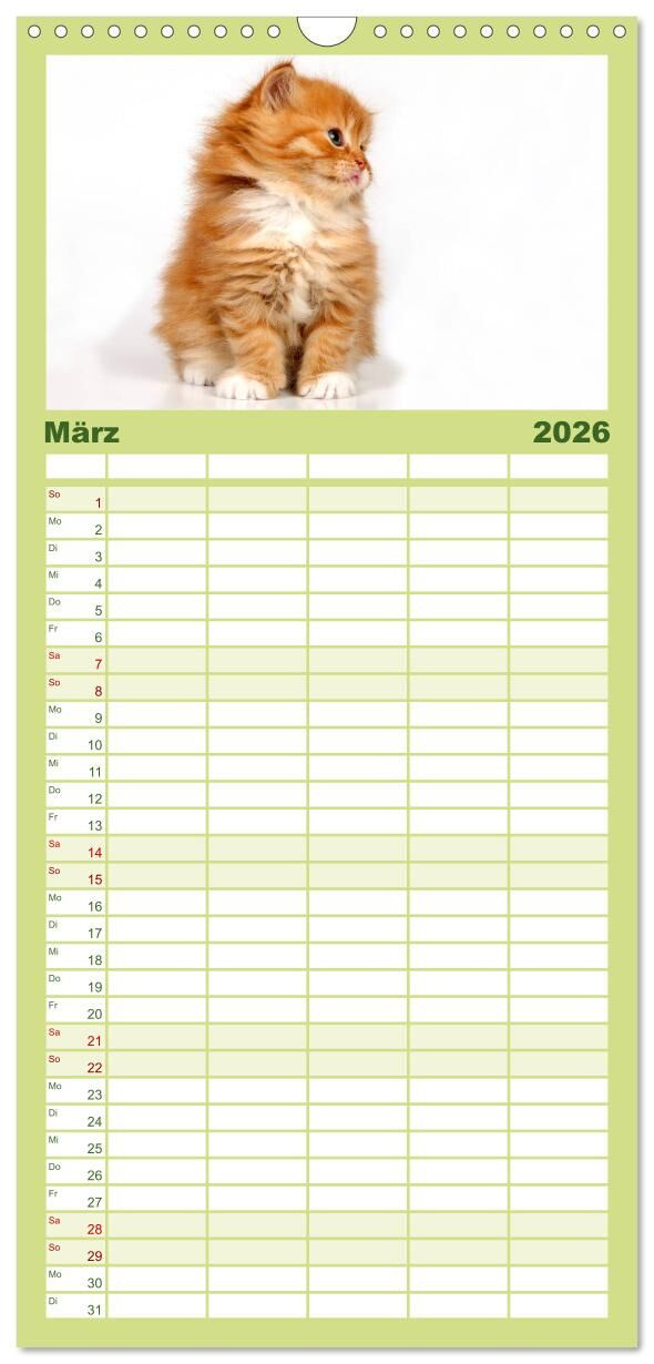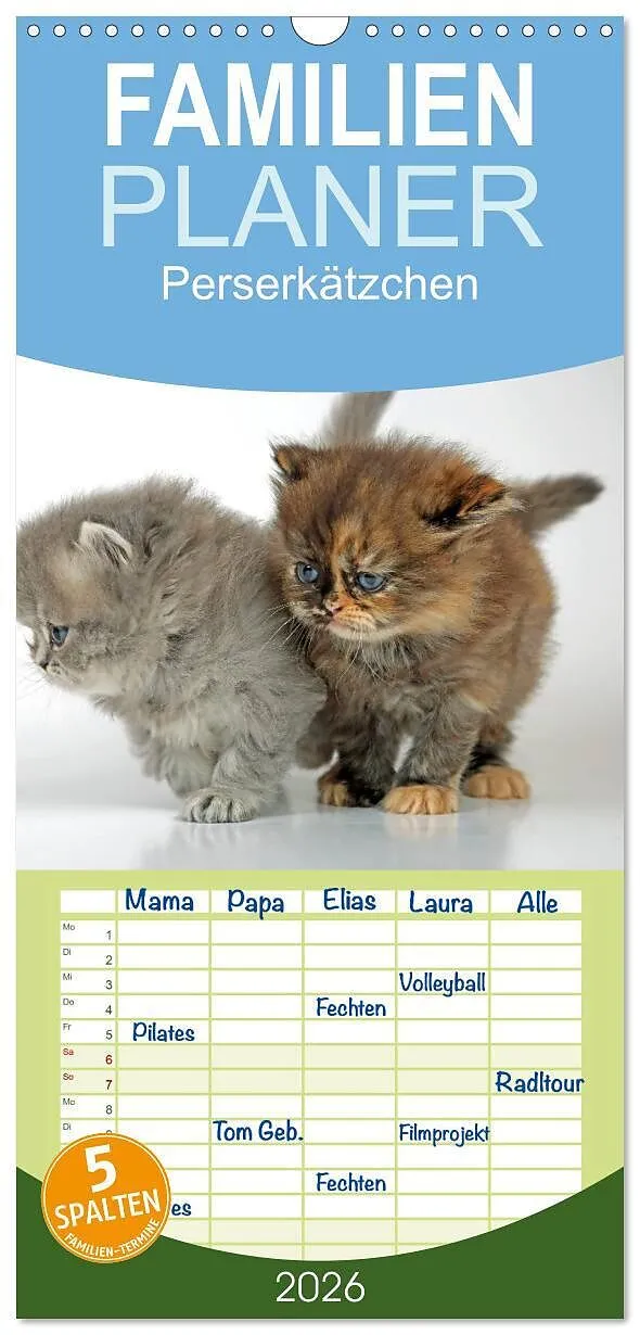 Familienplaner 2026 - Perserkätzchen mit 5 Spalten (Wandkalender, 21 x 45 cm) CALVENDO