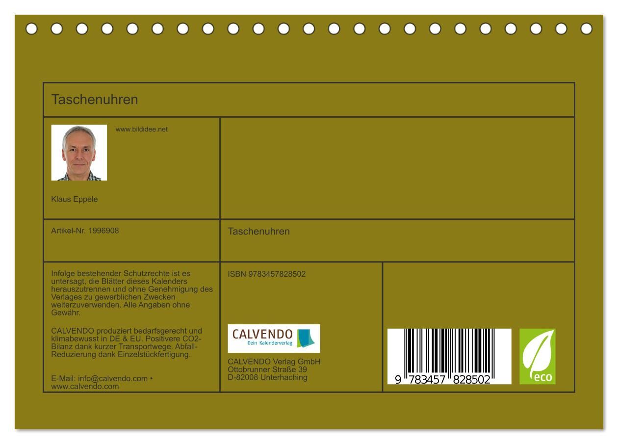 Ein Hauch von Luxus und Faszination spürt man inmitten dieser Vielfalt herrlicher Taschenuhren. Der Kalender zeigt verschiedene Gehäuse-Bauformen, Uhrenschlüssel, Damen- und Herrenuhren und zeigt auch die filigrane Technik, die sich im Innern dieser analogen Z...