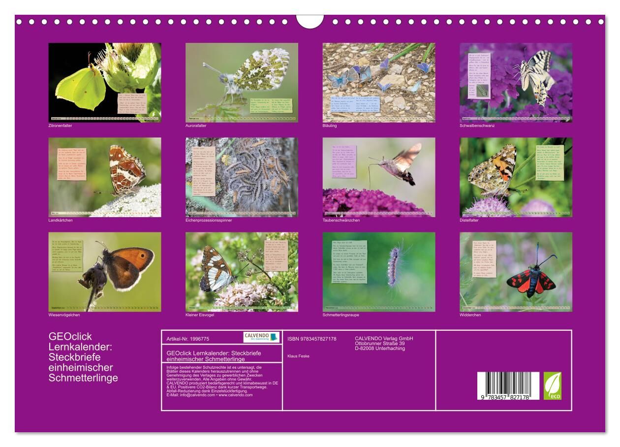 GEOclick Lernkalender: Steckbriefe einheimischer Schmetterlinge (Wandkalender 2026 DIN A3 quer), CALVENDO Monatskalender